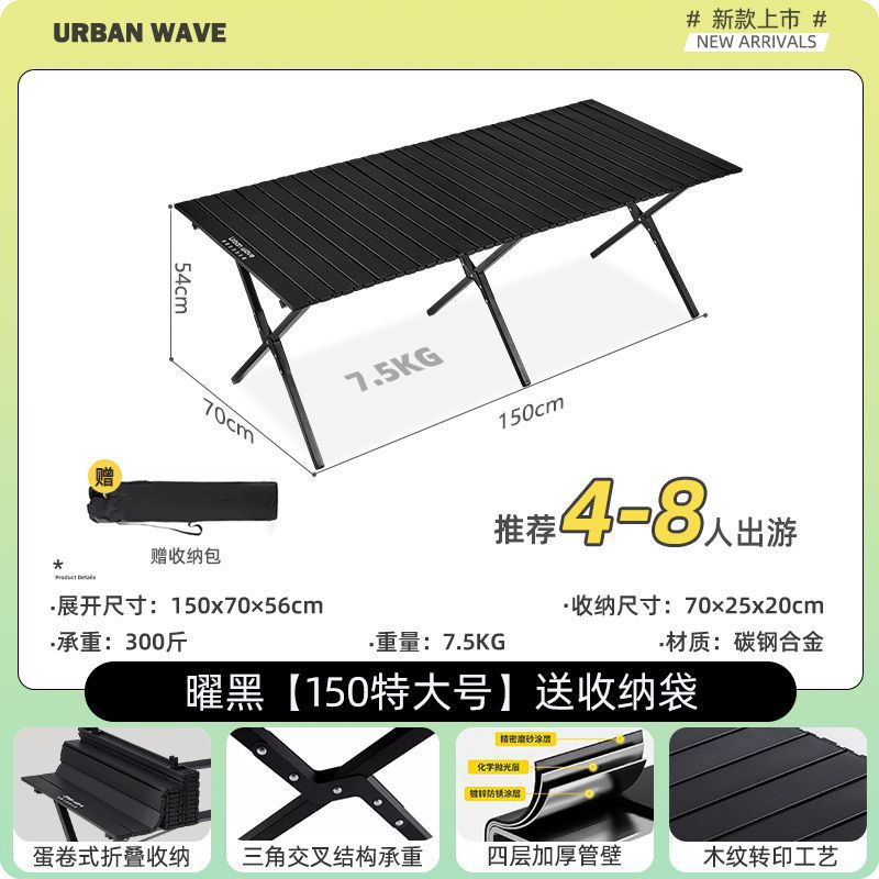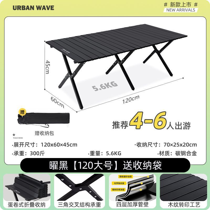 户外折叠桌椅蛋卷便携式野餐折叠桌桌子碳钢露营装备用品套装