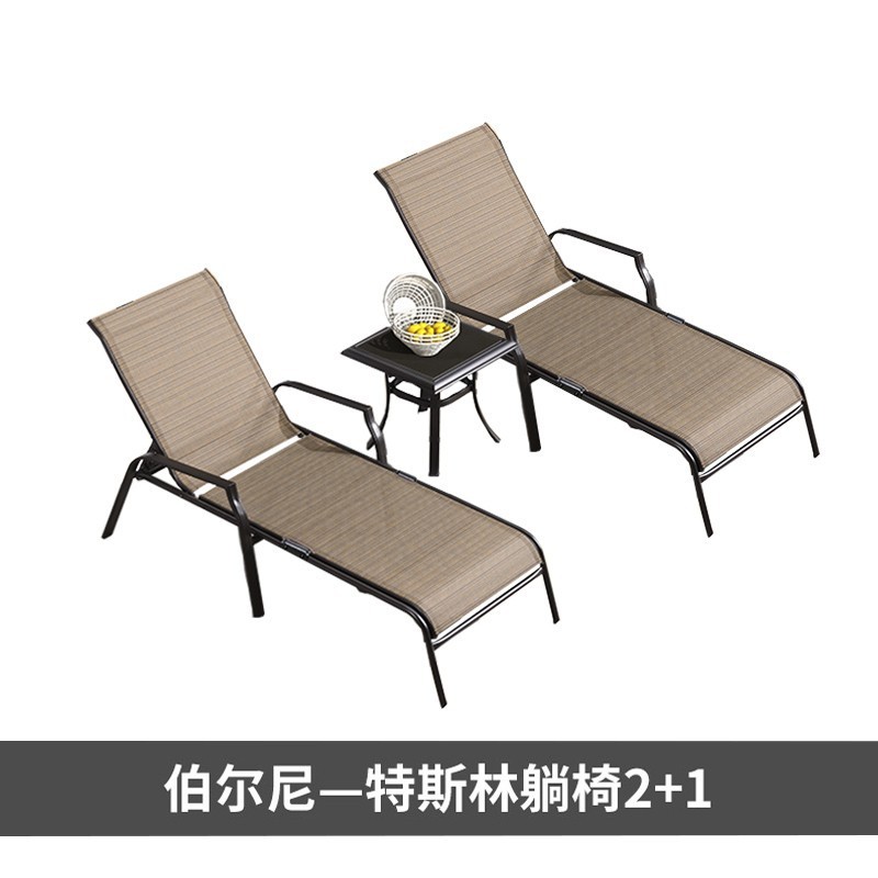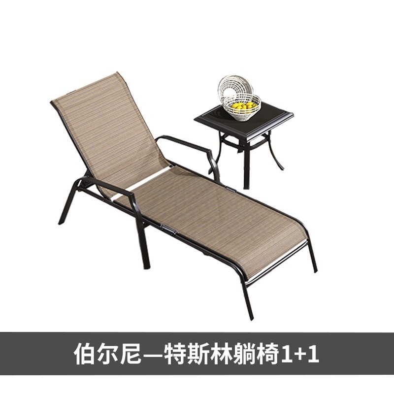 特斯林折叠躺床2把+茶几【卡其色】.