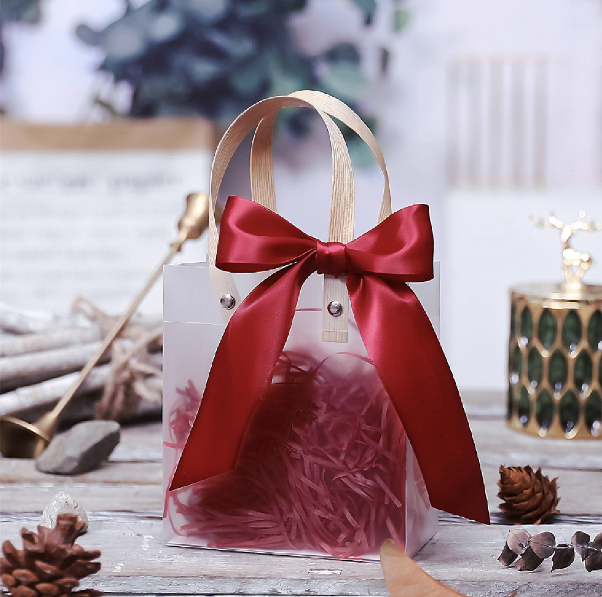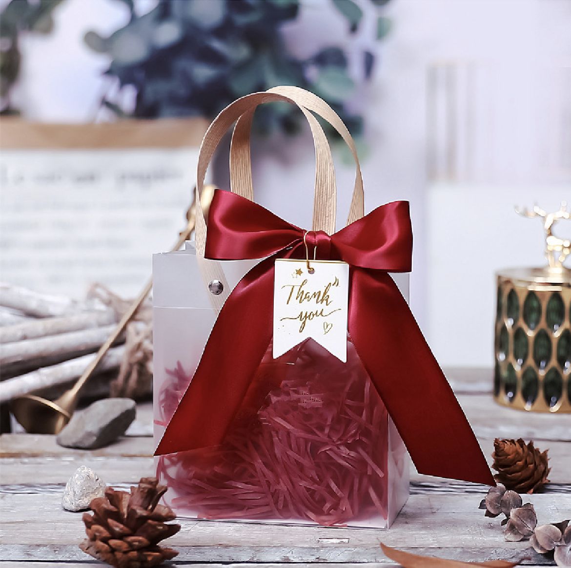 袋子+感谢卡+红丝袋+红色草+挂件