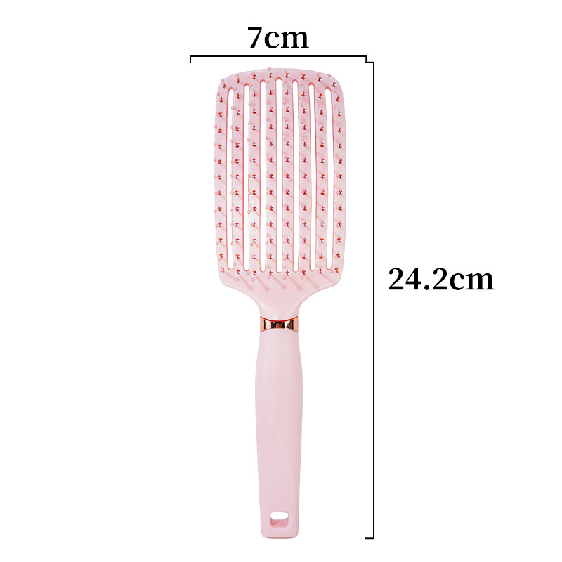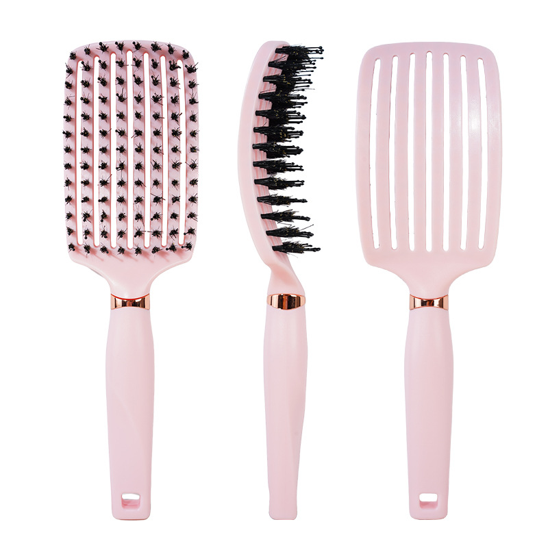 蔷薇粉方柄弯梳(猪鬃混单针)