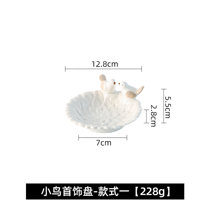 小鸟点心盘陶瓷珠宝首饰收纳盘创意可爱置物架肥皂碟轻奢高档摆盘