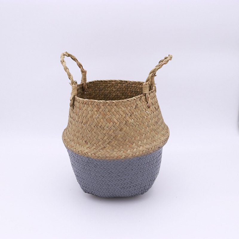 厂家批发北欧风花盆编织海草篮 家居用品草编收纳筐折叠草编花篮