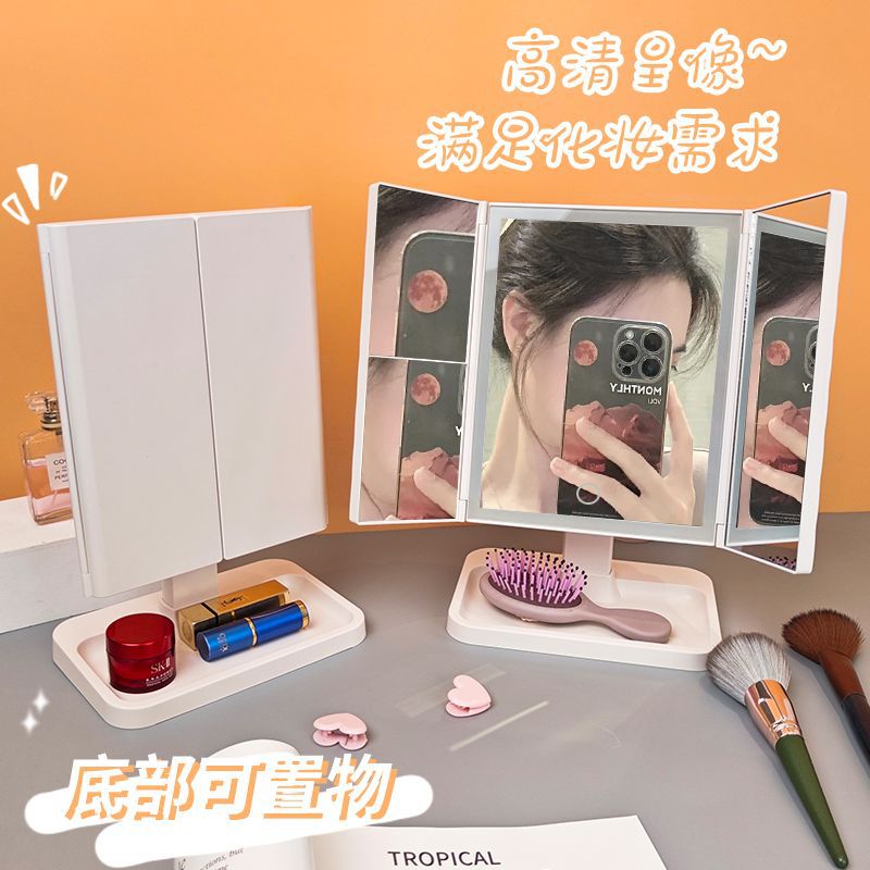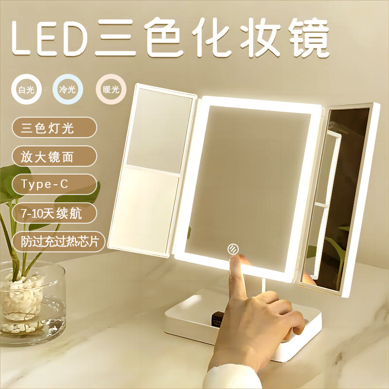 跨境爆款贝壳智能led化妆镜 带灯台式多功能桌面折叠镜子补光批发