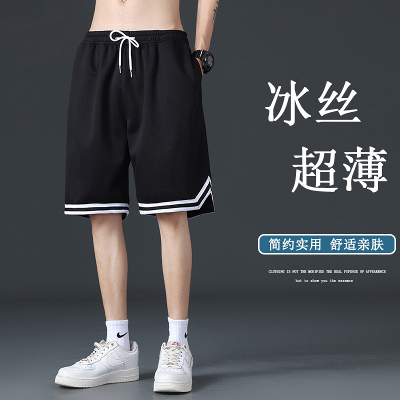 夏季冰丝短裤男潮流薄款沙滩裤宽松百搭直筒大码休闲运动中裤男