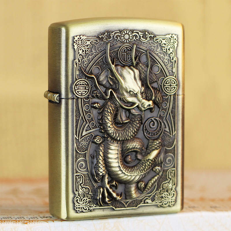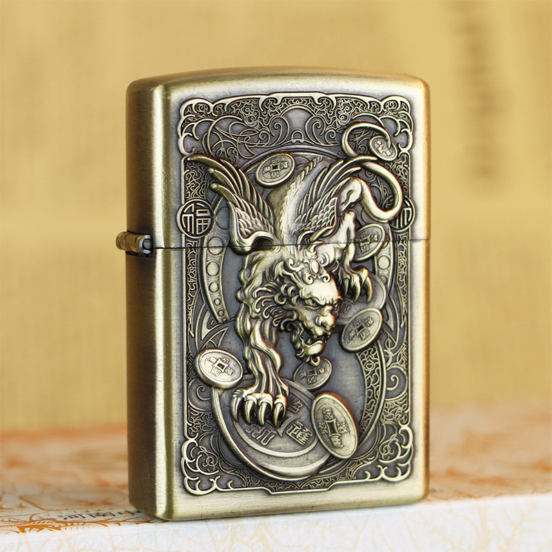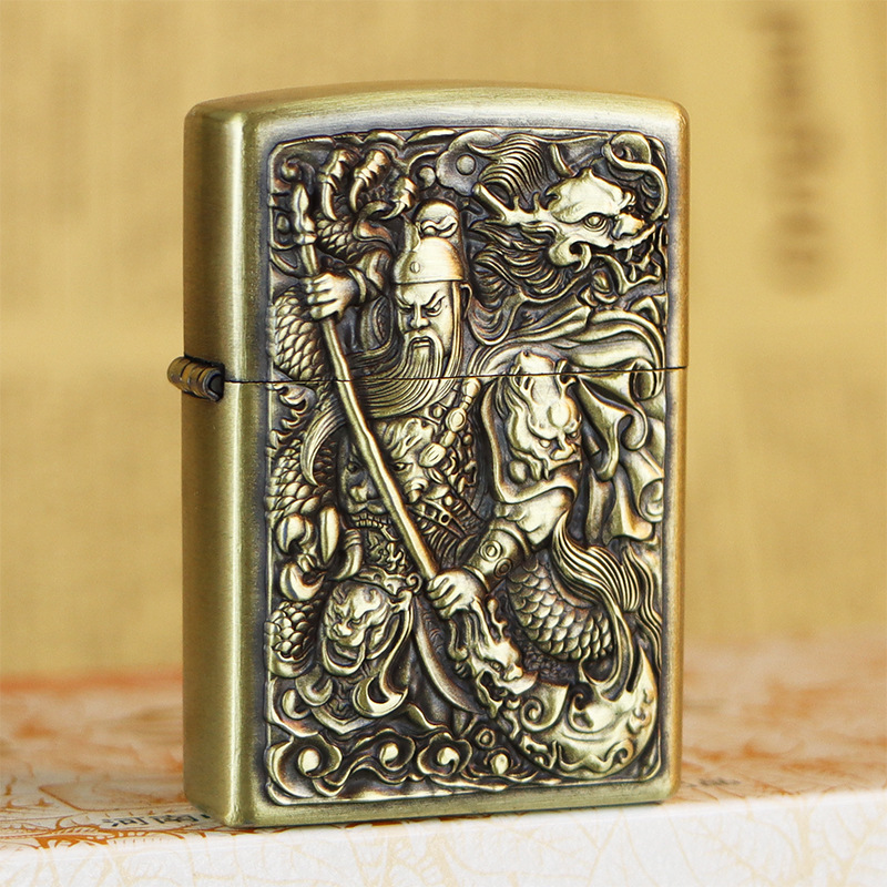 KUPAI酷派高档青铜拉丝不锈钢立体浮雕关公等图案防风煤油打火机