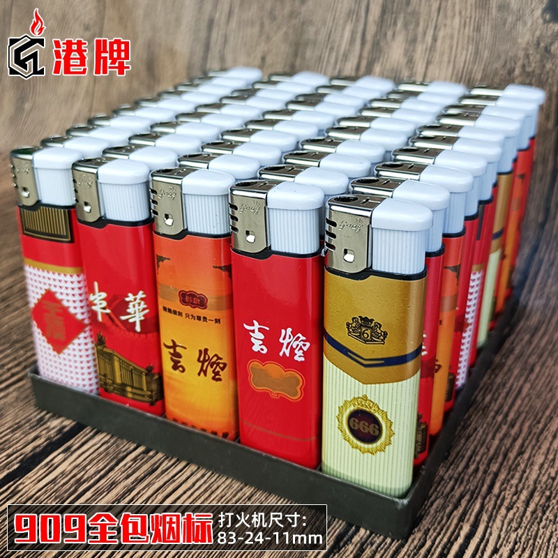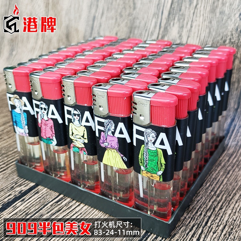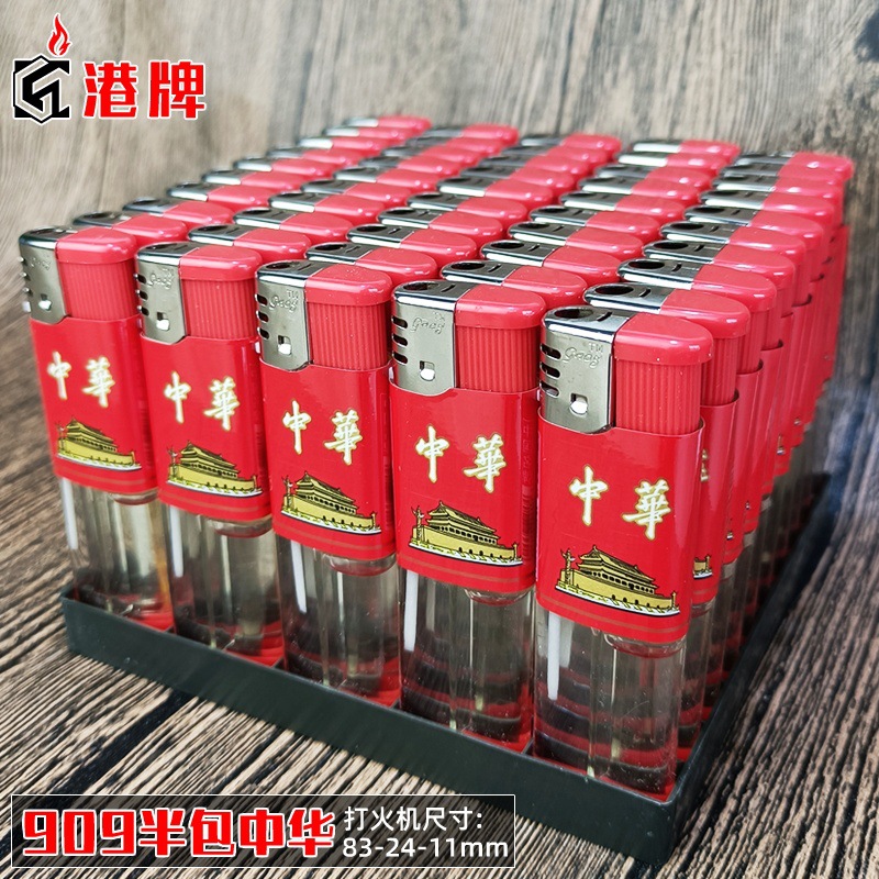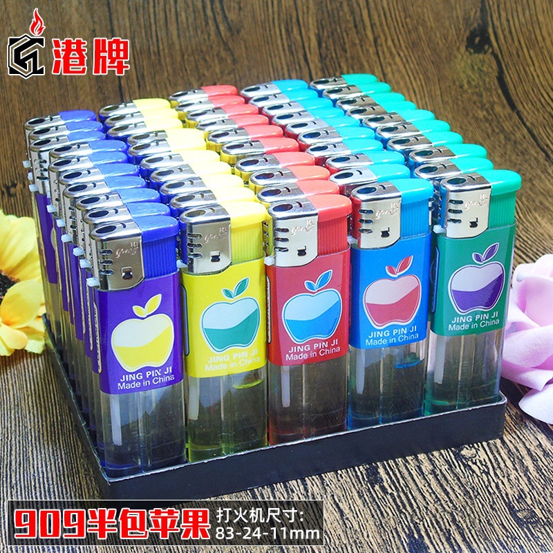 港牌透明气体明火一次性打火机 厂家批发直冲电子909半包苹果火机