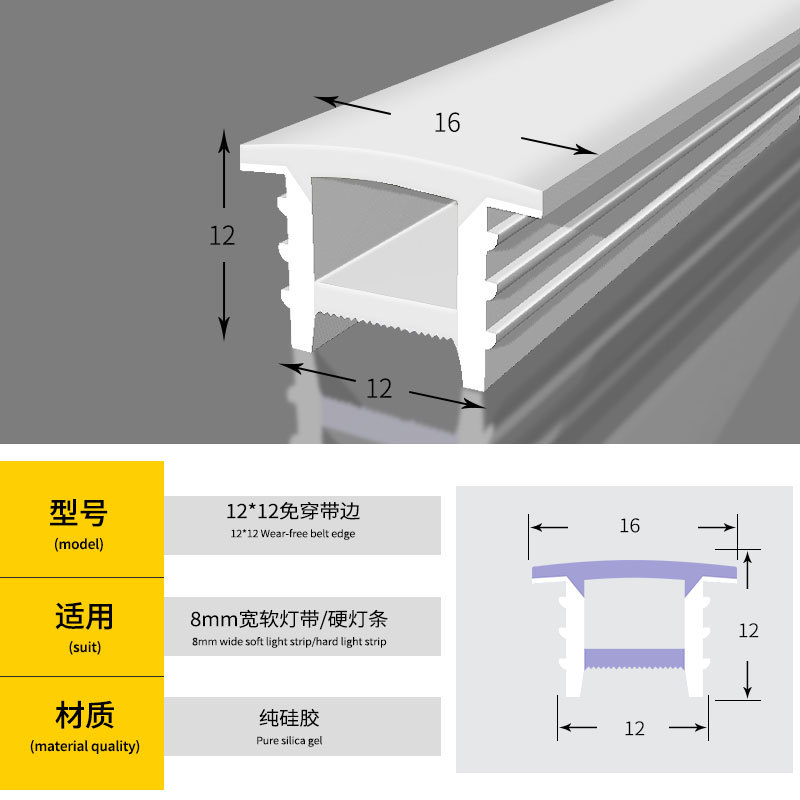24V-1616免穿带边(硅胶灯带分体)