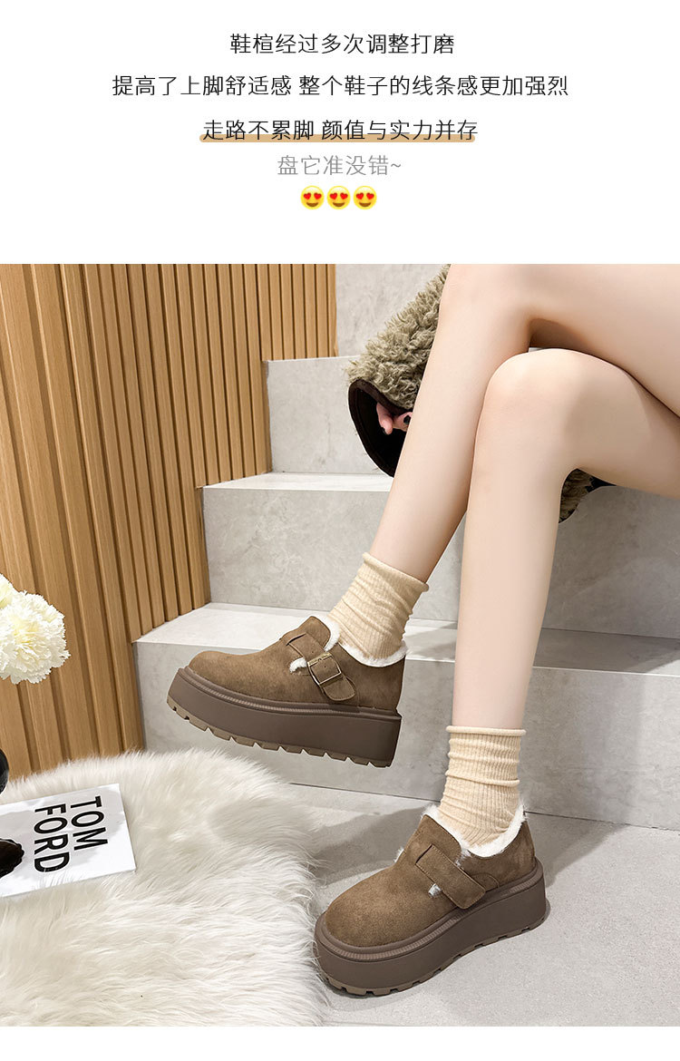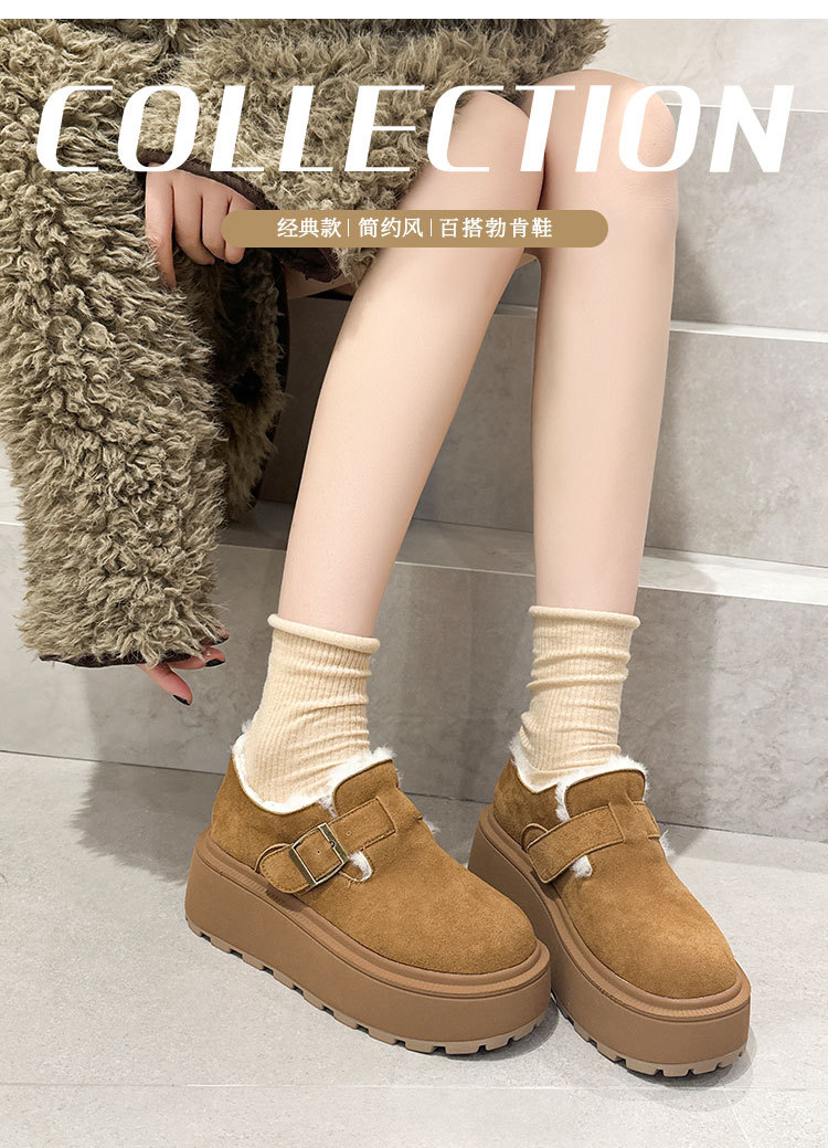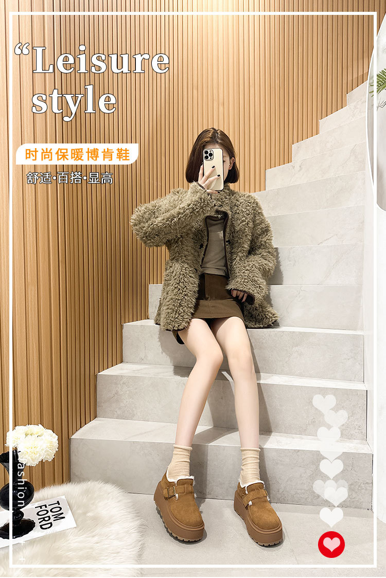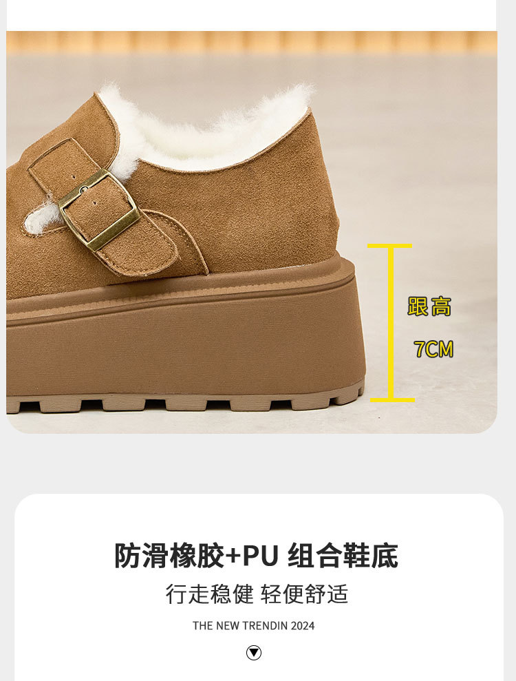 小码真皮厚底勃肯鞋女2024秋冬新款增高豆豆鞋加绒保暖外穿毛毛鞋