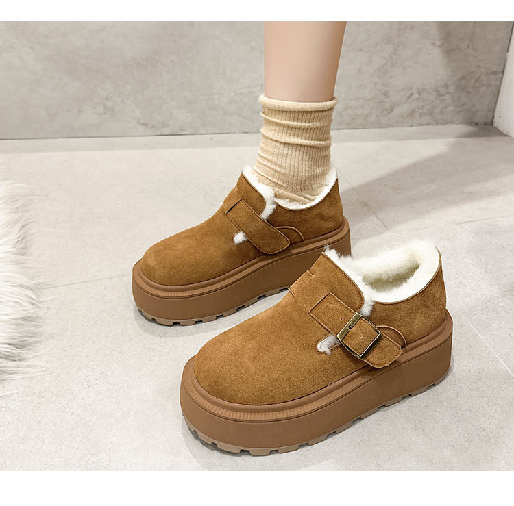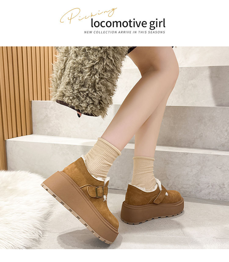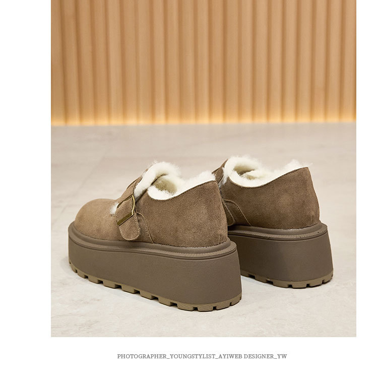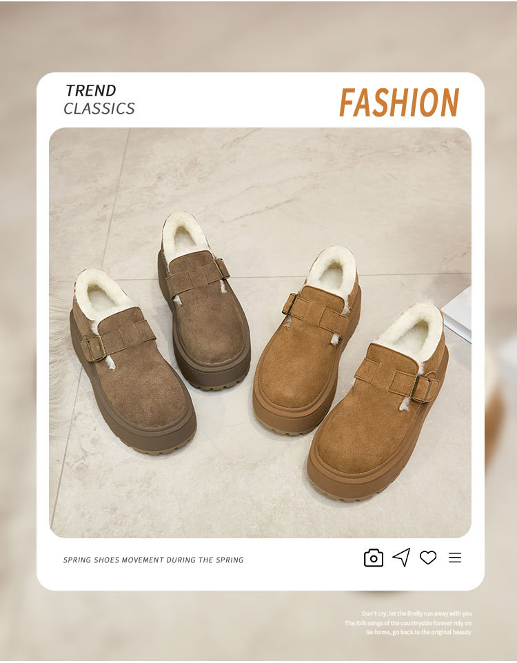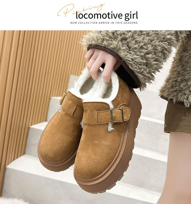 小码真皮厚底勃肯鞋女2024秋冬新款增高豆豆鞋加绒保暖外穿毛毛鞋