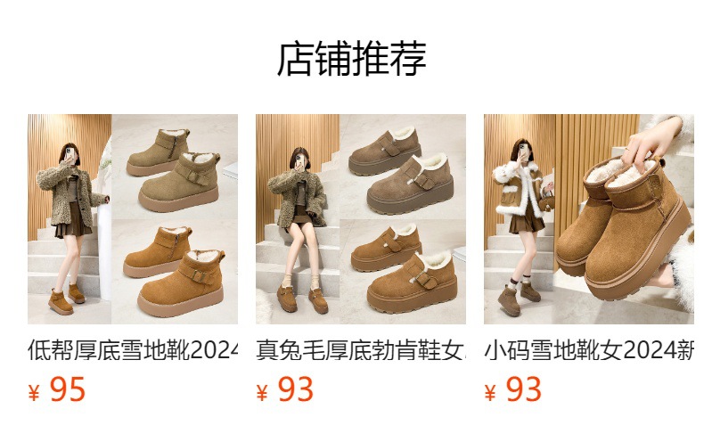 低帮厚底雪地靴2024冬季新款加绒加厚短靴休闲增高雪地靴小码3233