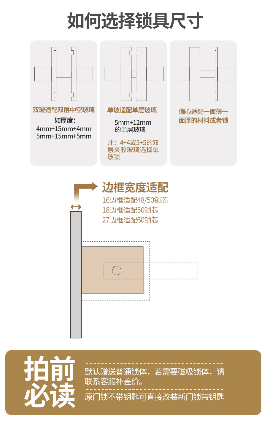 D型【黑色双玻】【不含锁舌】