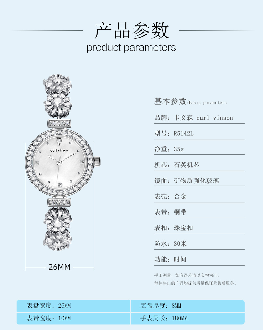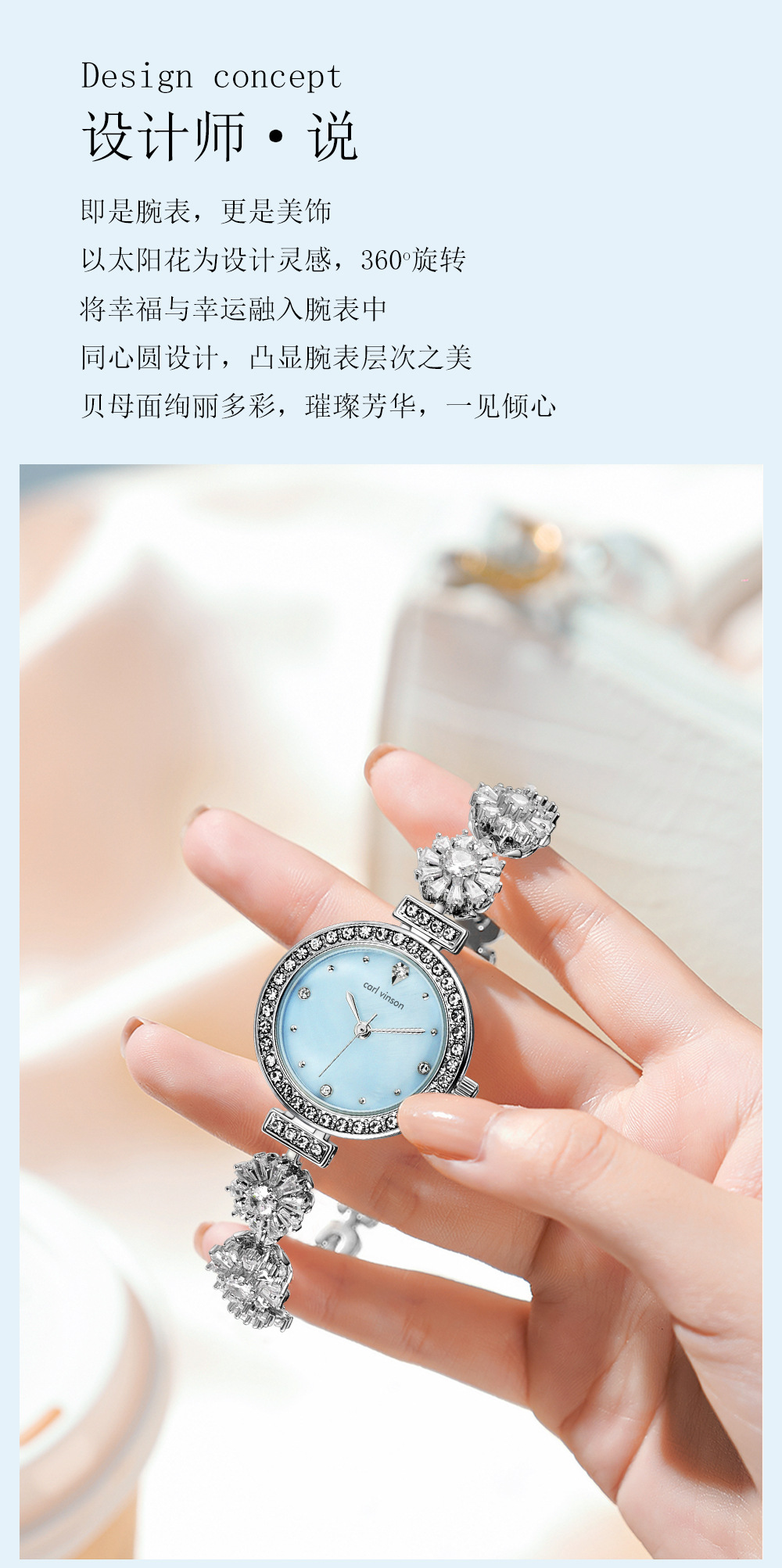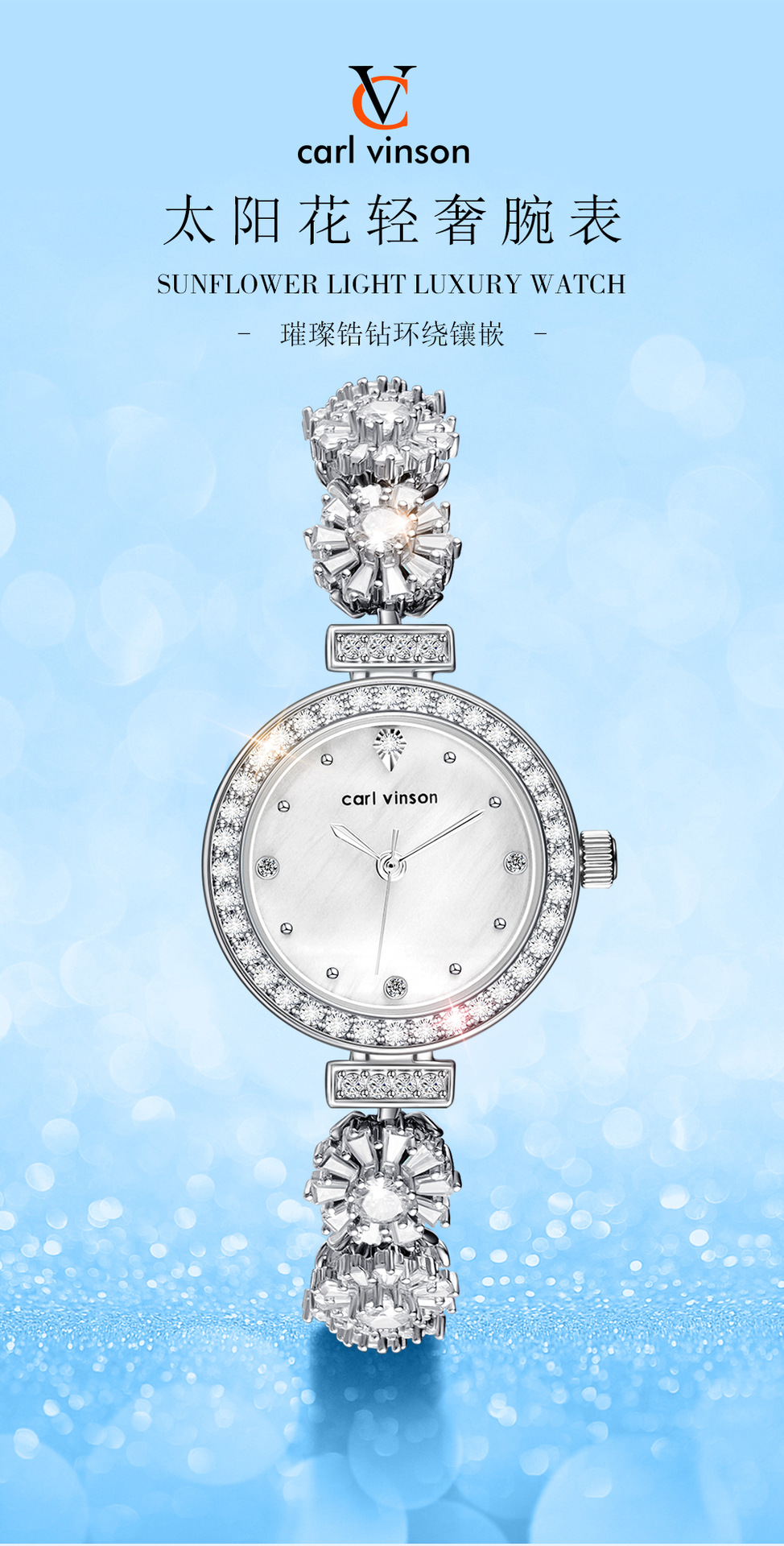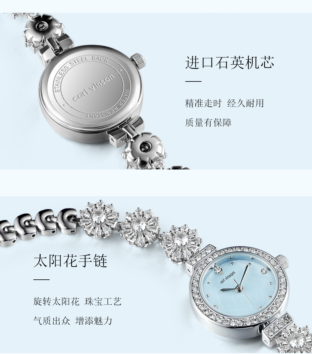 carl vinson精致手链女士手表合金时尚淑女3ATM防水礼品淑女腕表