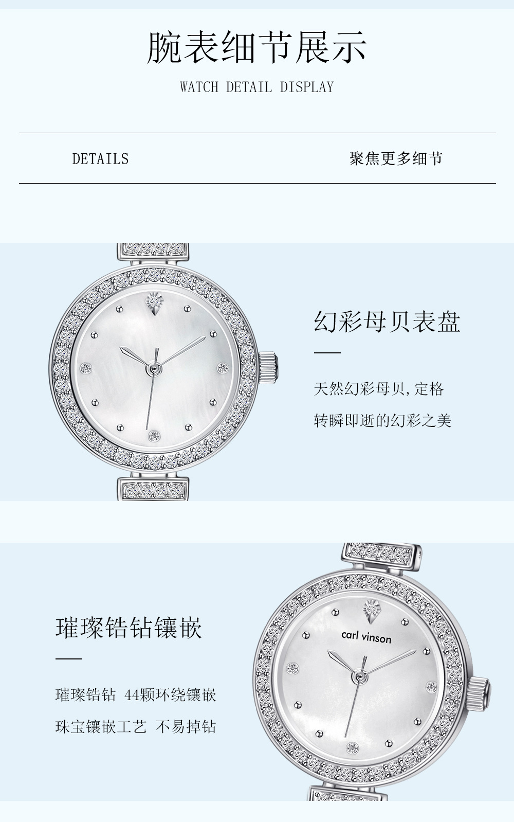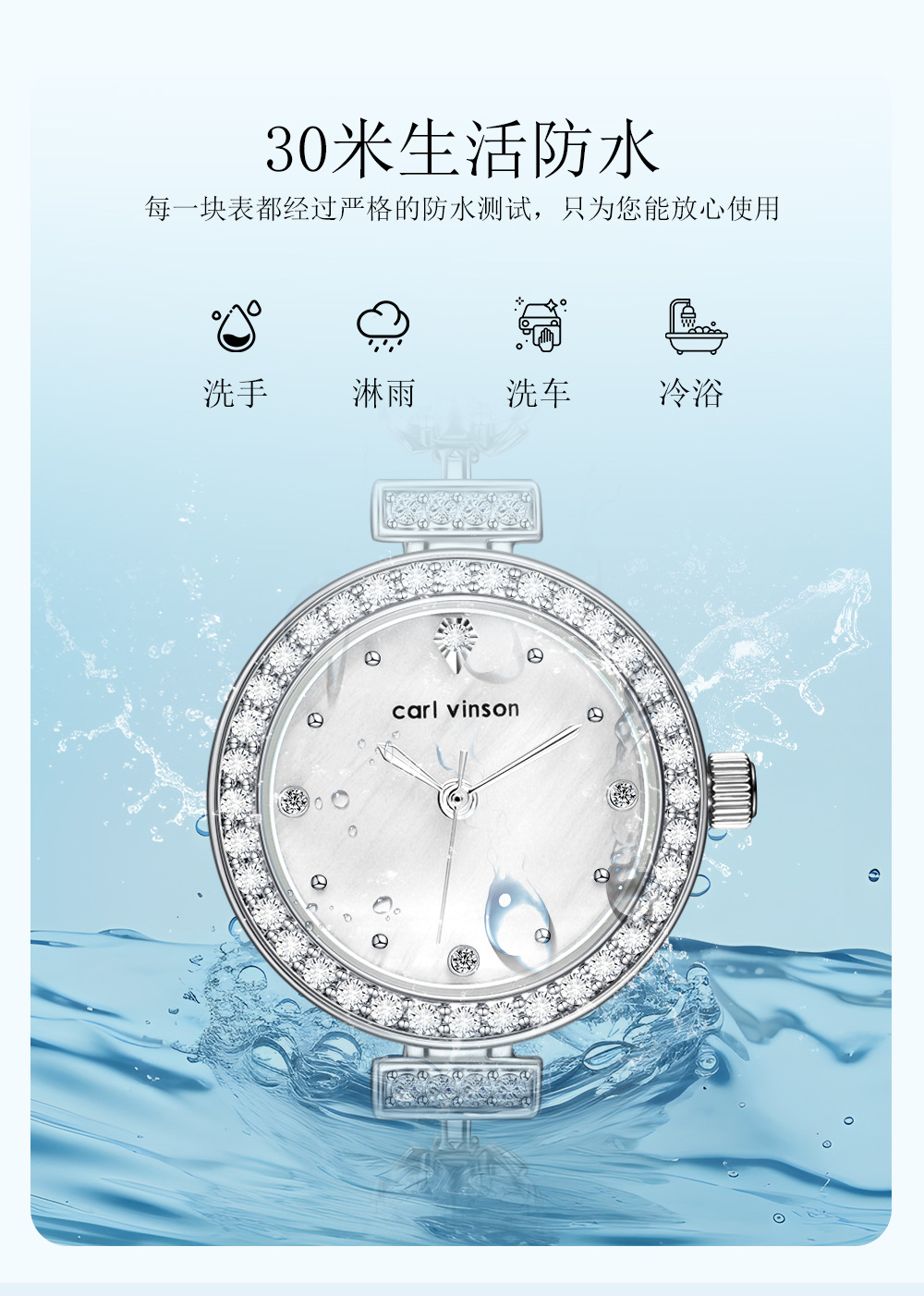 carl vinson精品女士防水新款石英腕表 时尚直播畅销女表手表代发