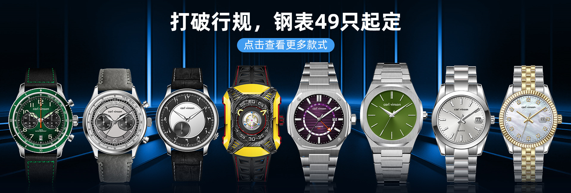 carl vinson高档男士简约石英手表三度防水合金男表代发直播货源