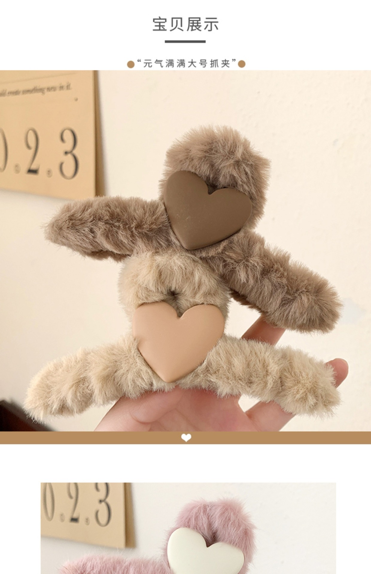 米色毛毛抓夹(约11cm)