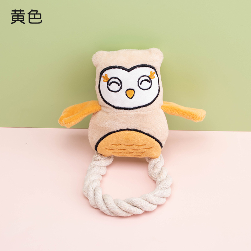 厂家直销 原创毛绒玩具棉绳猫头鹰发声玩具磨牙耐咬狗狗玩具批发