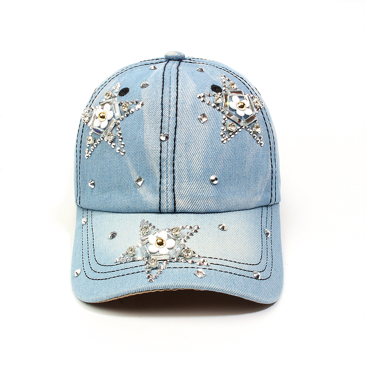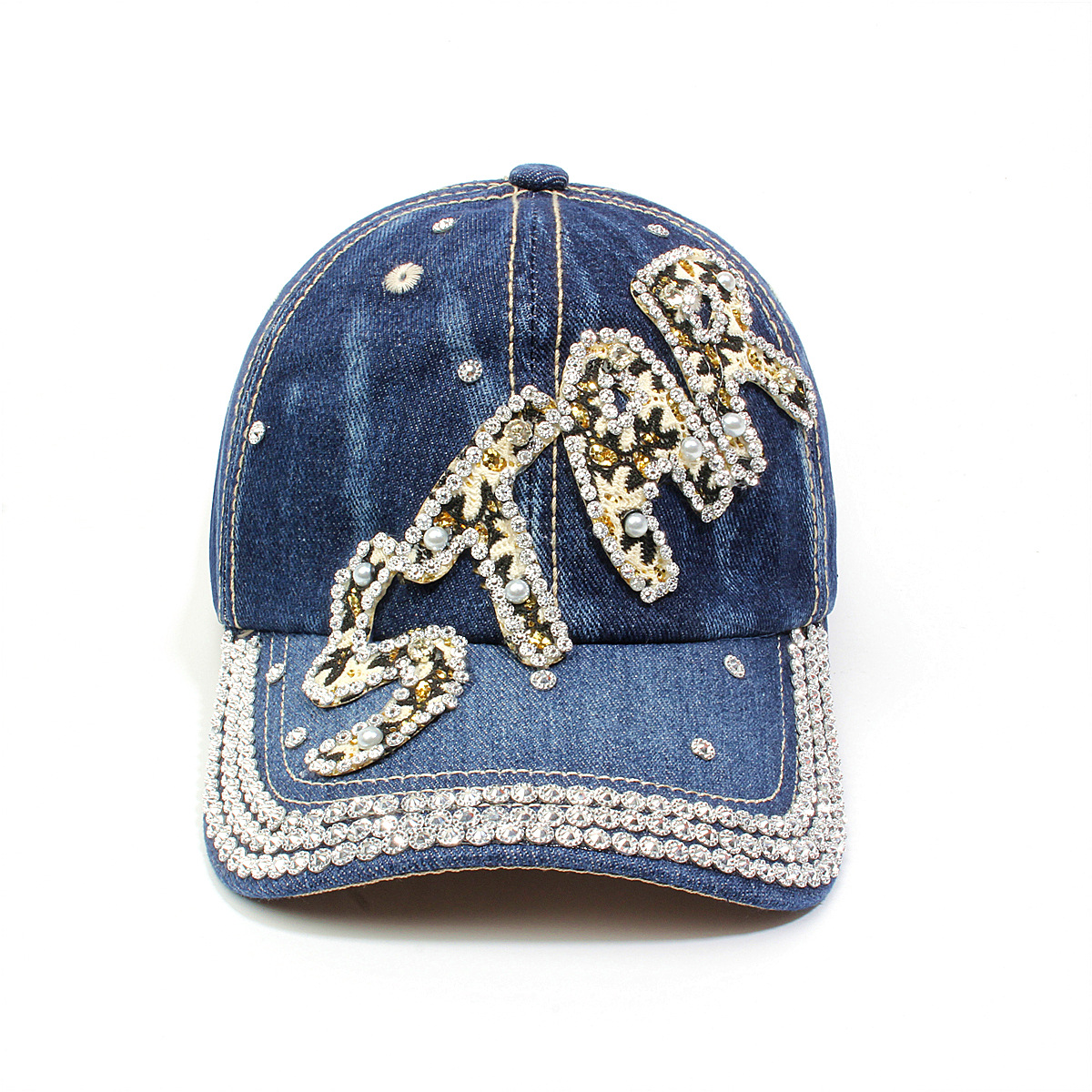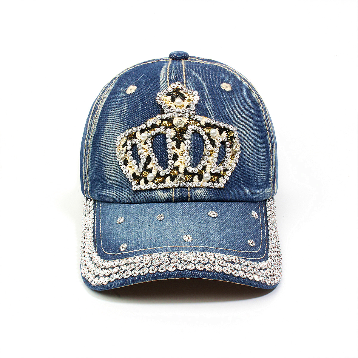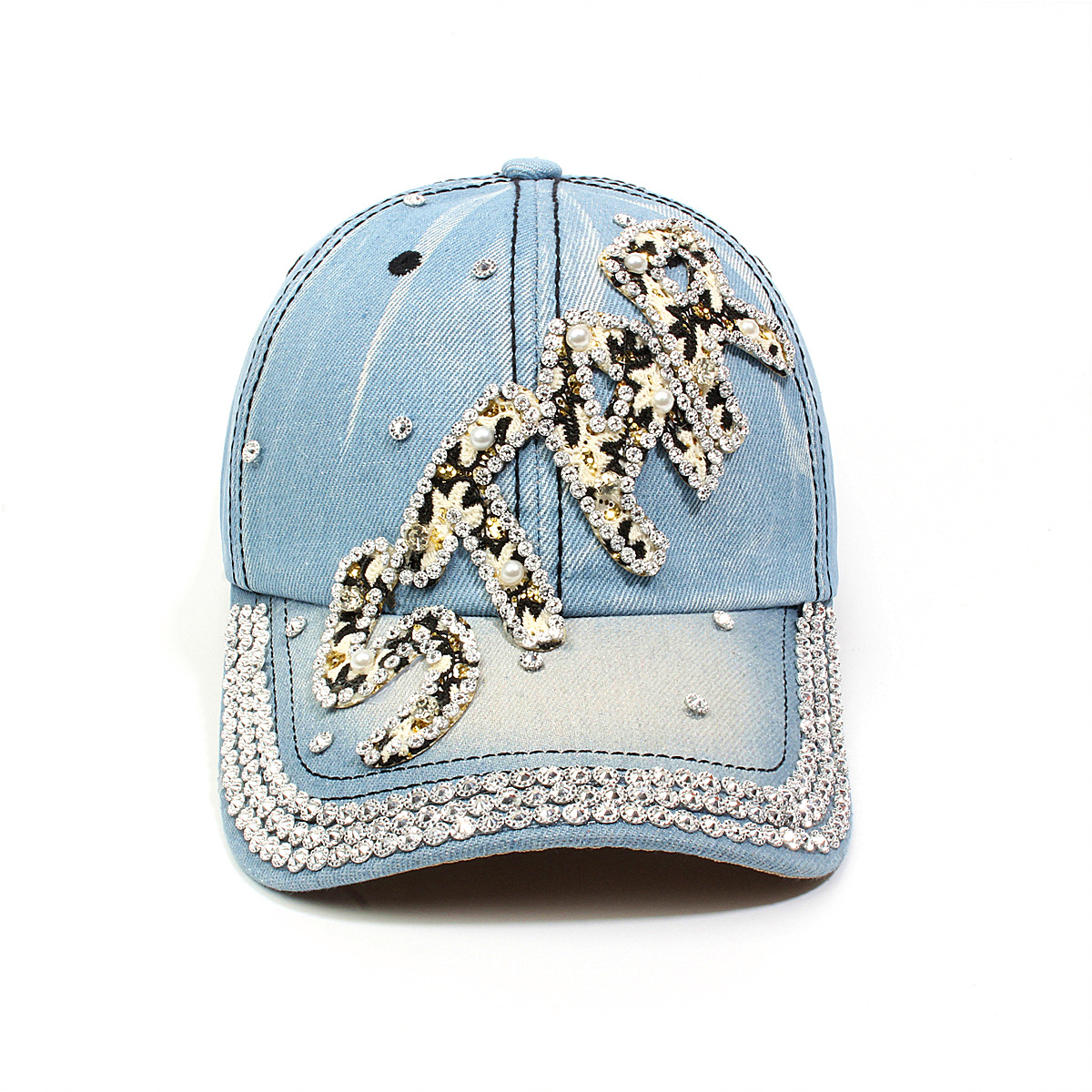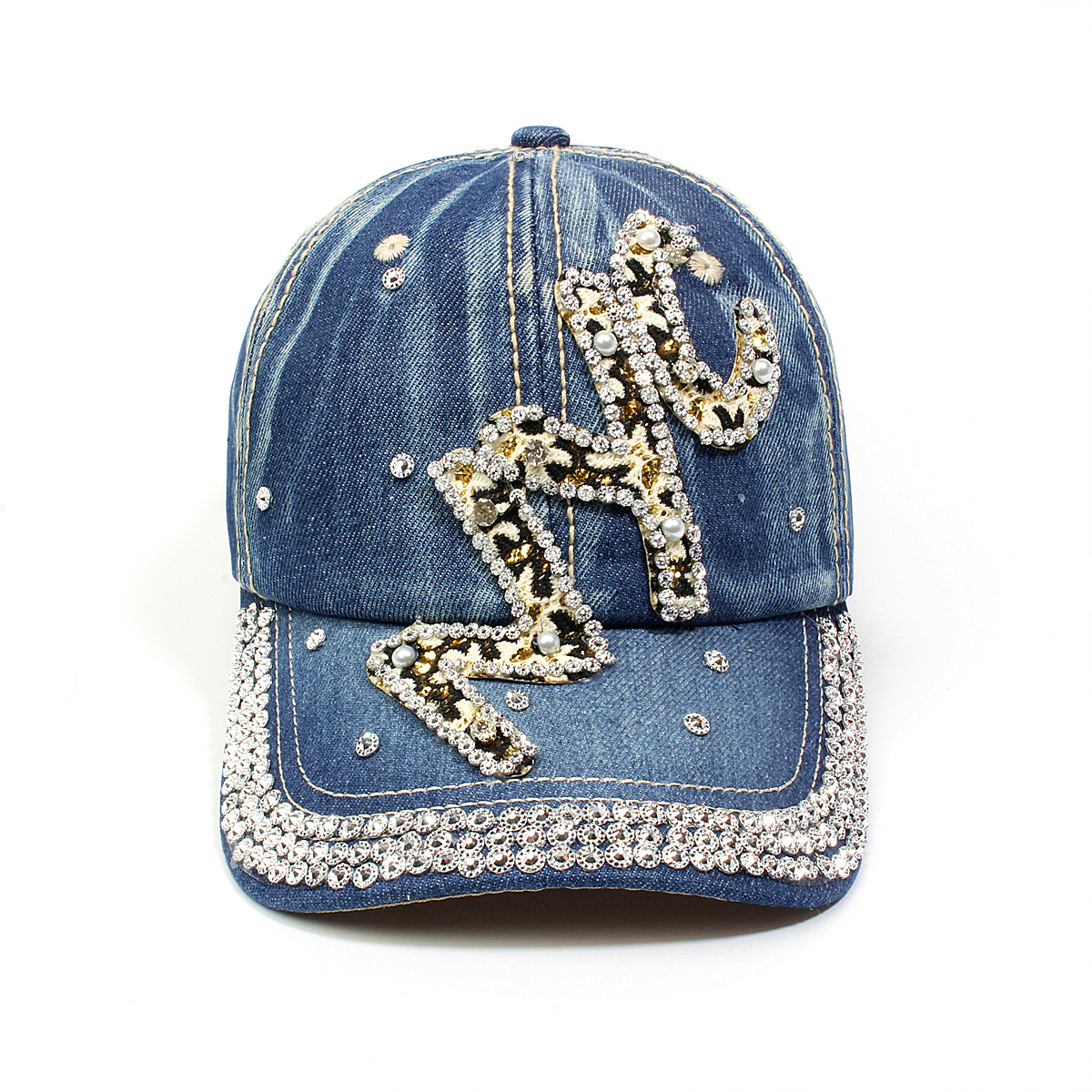 跨境外贸新款牛仔布女镶钻欧美国休闲成人棒球帽时尚洋气鸭舌帽子