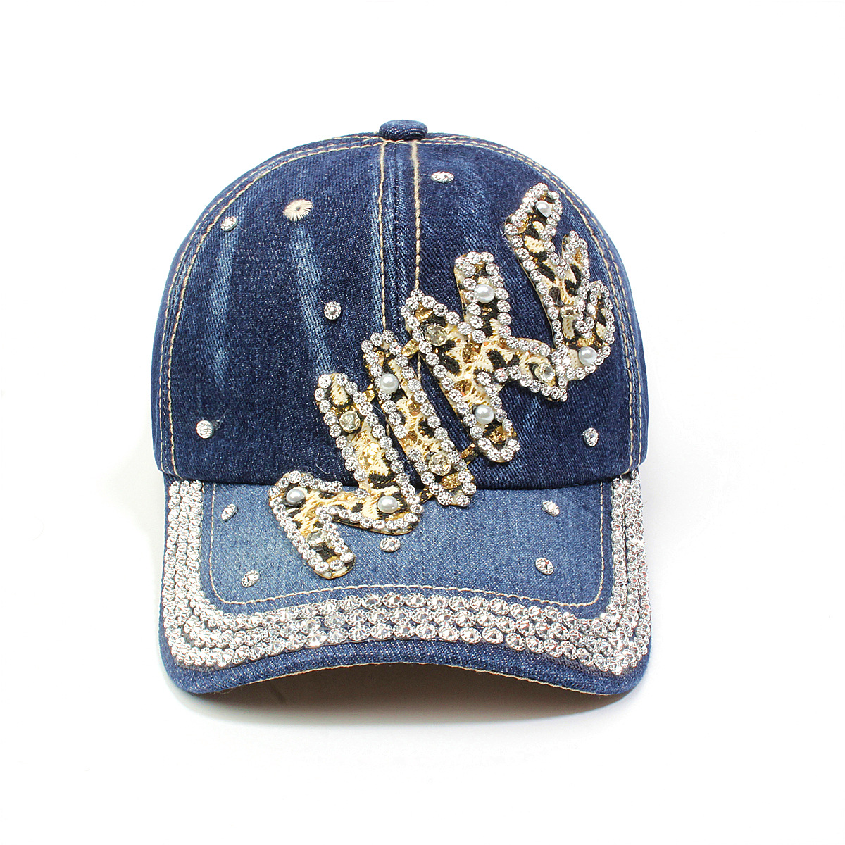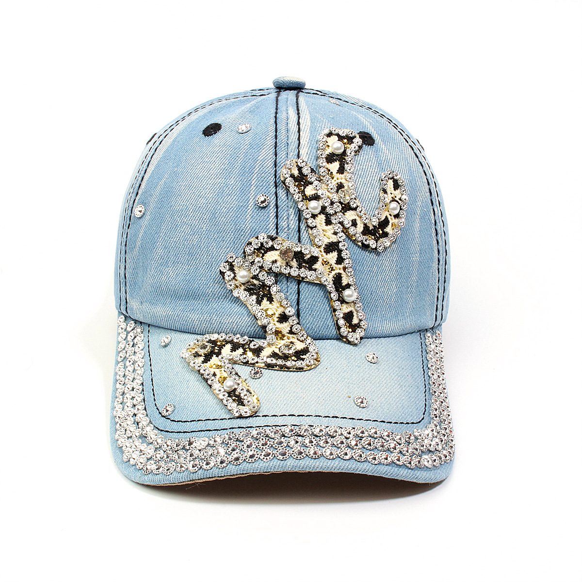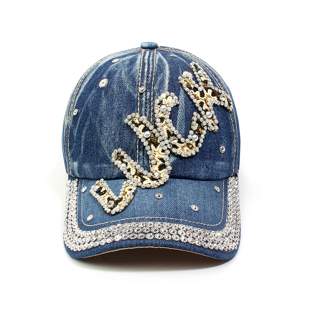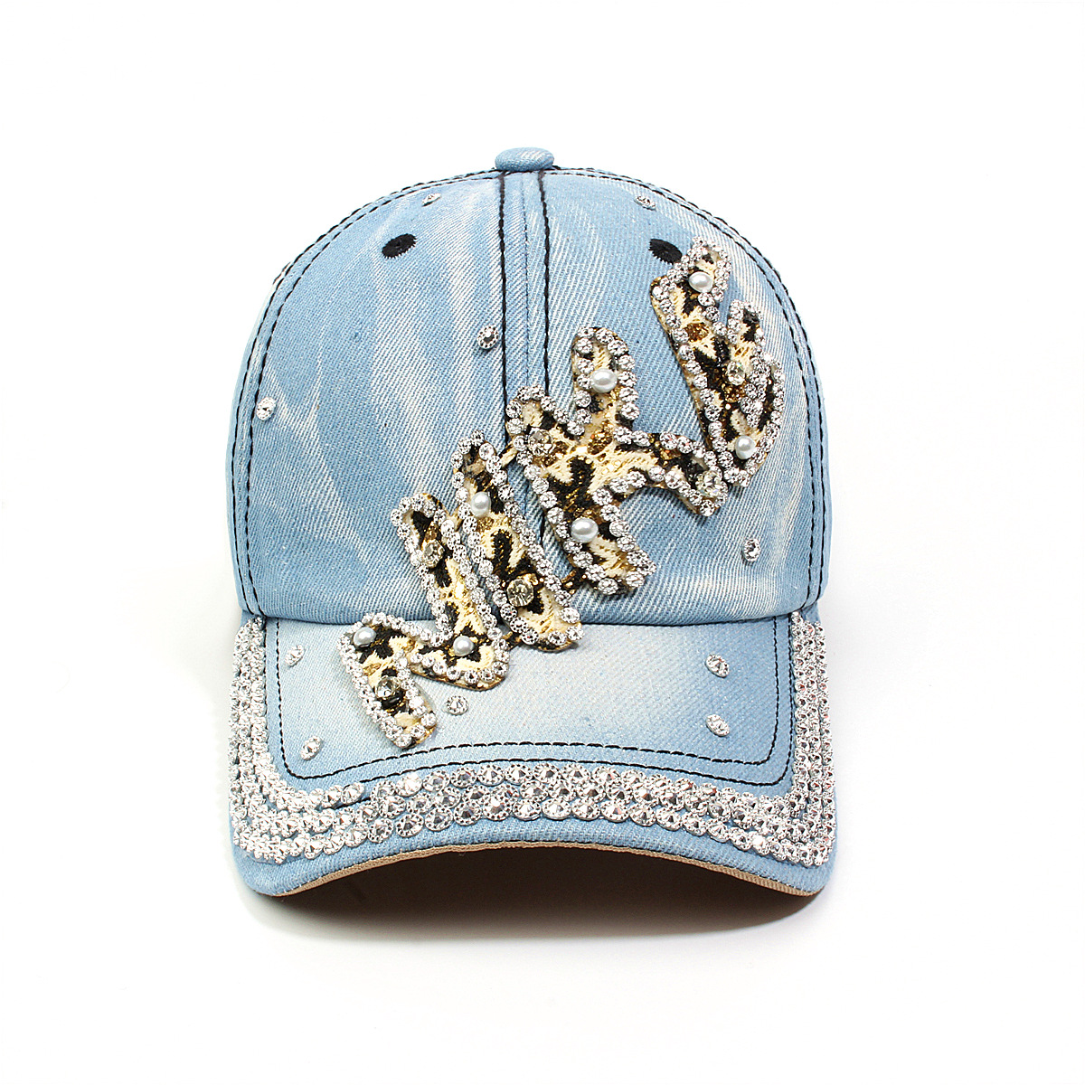 跨境外贸新款牛仔布女镶钻欧美国休闲成人棒球帽时尚洋气鸭舌帽子