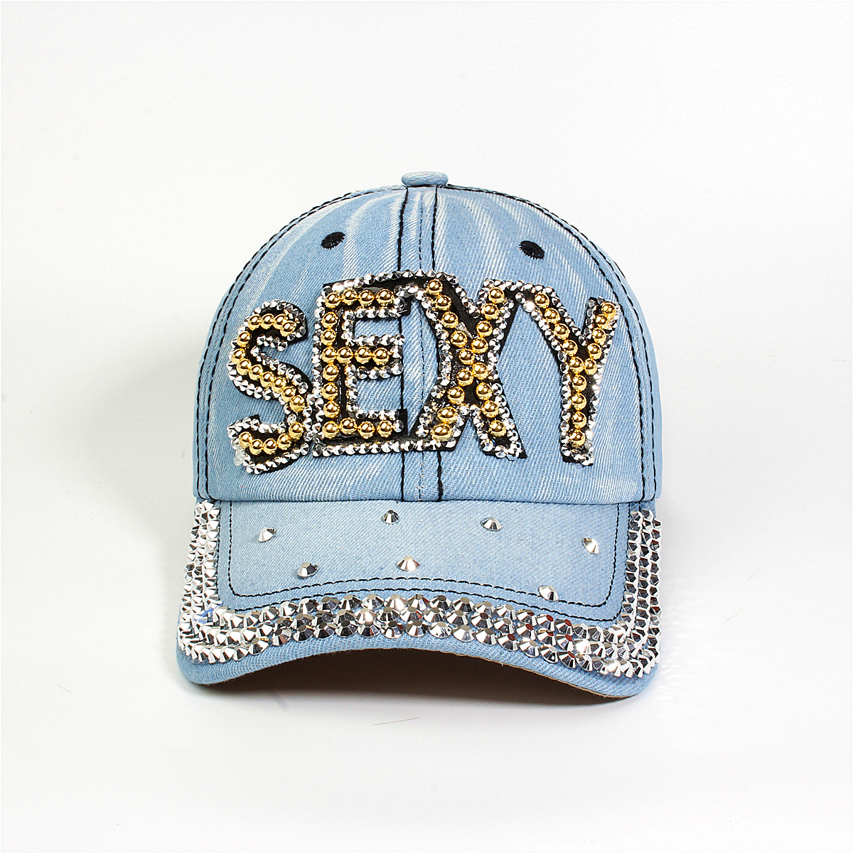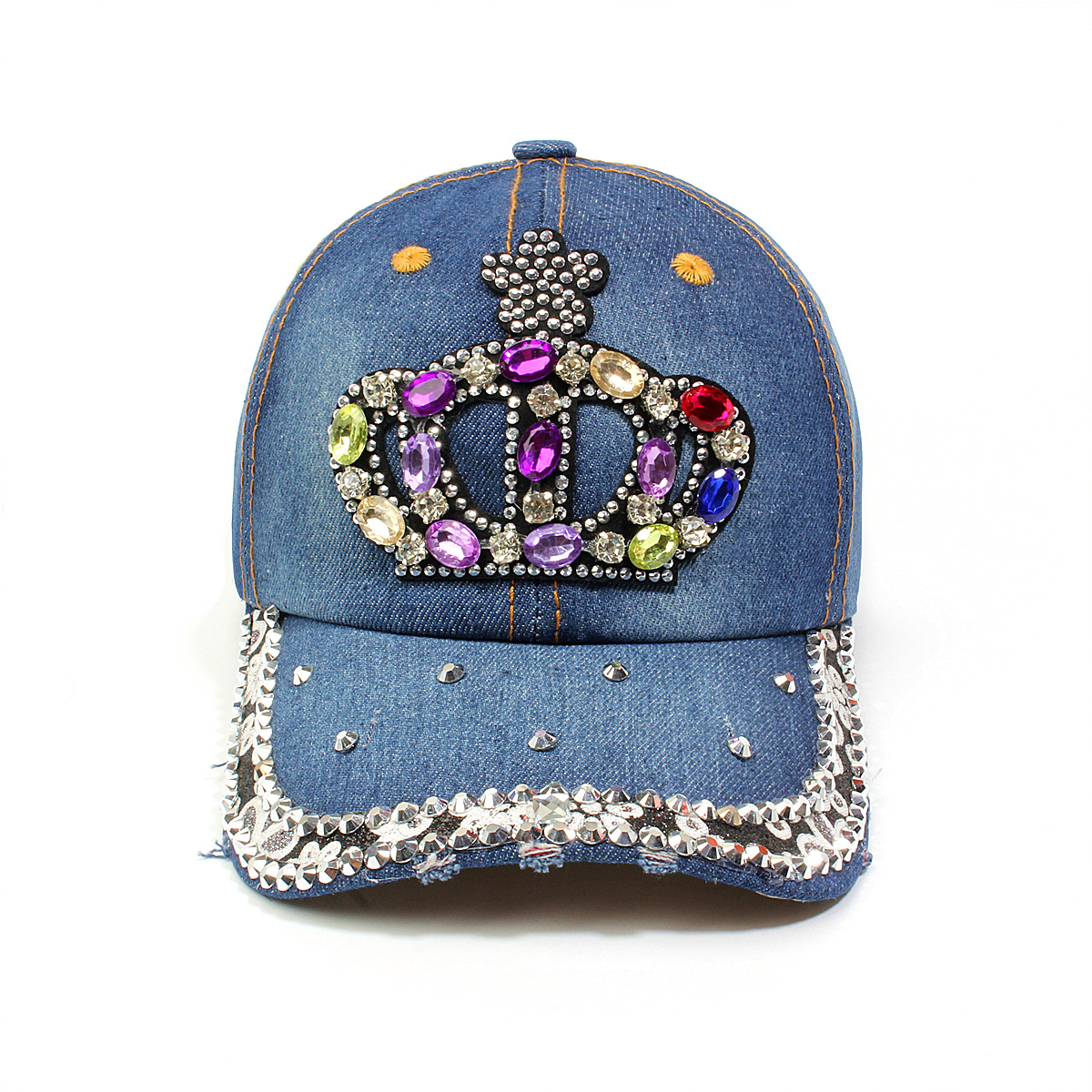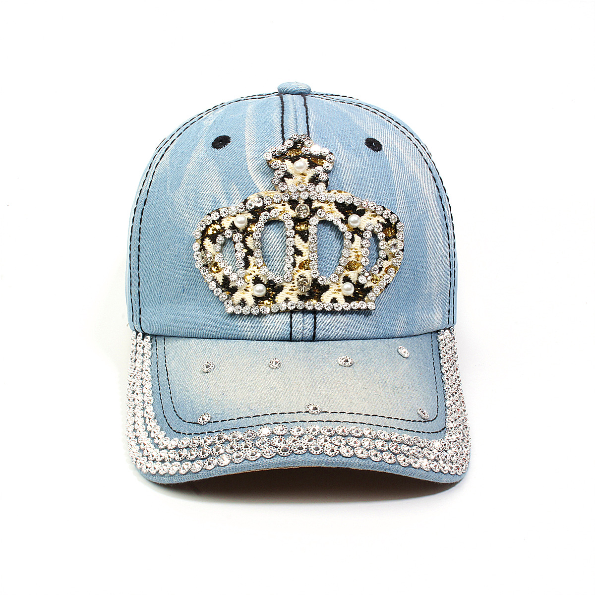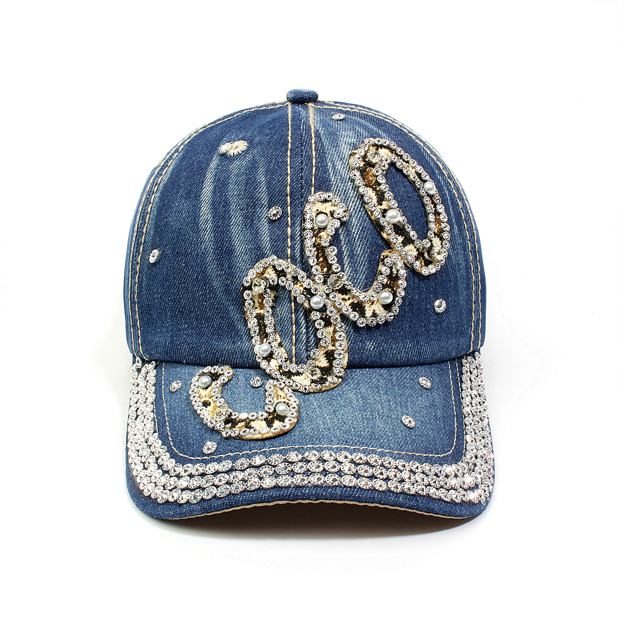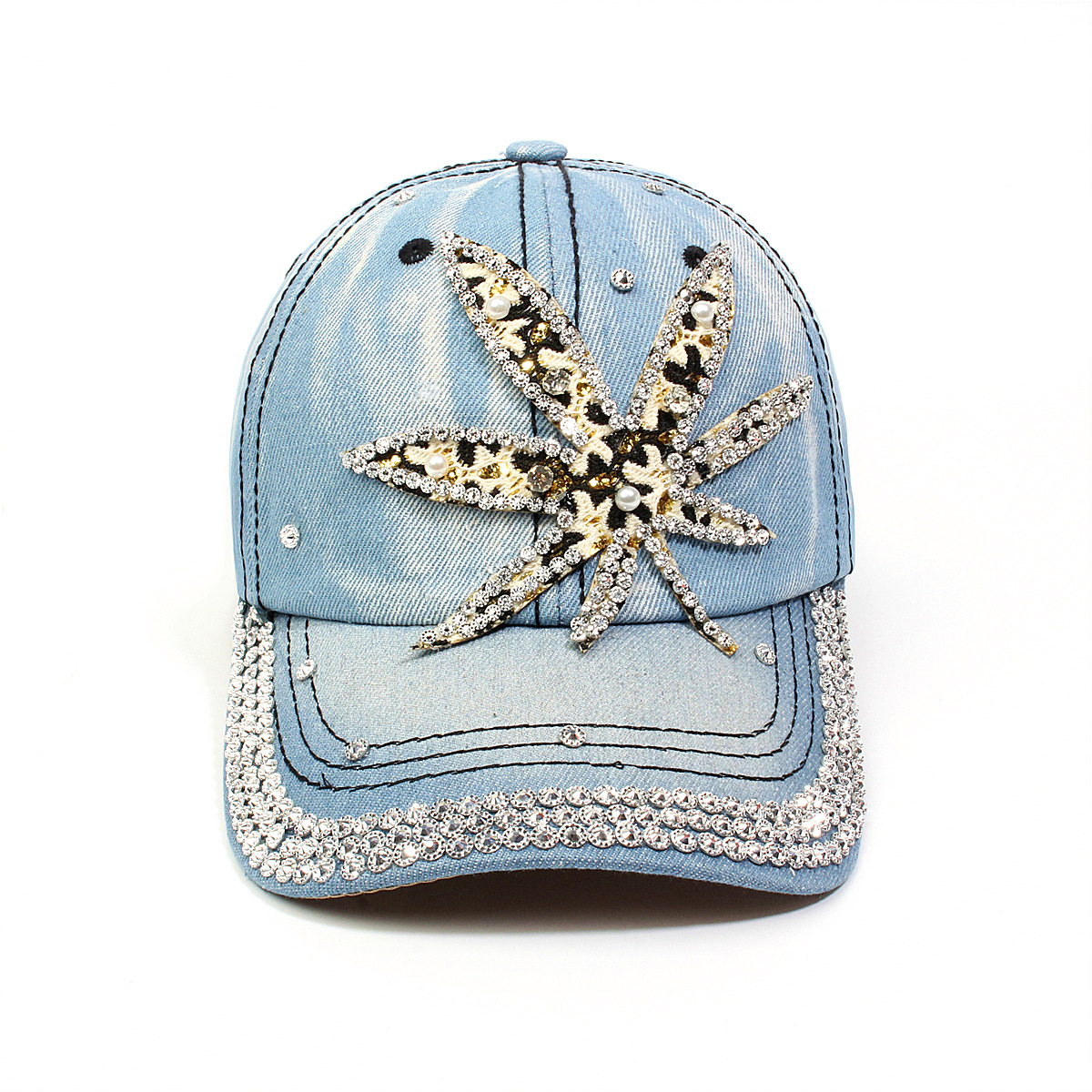 跨境外贸新款牛仔布女镶钻欧美国休闲成人棒球帽时尚洋气鸭舌帽子