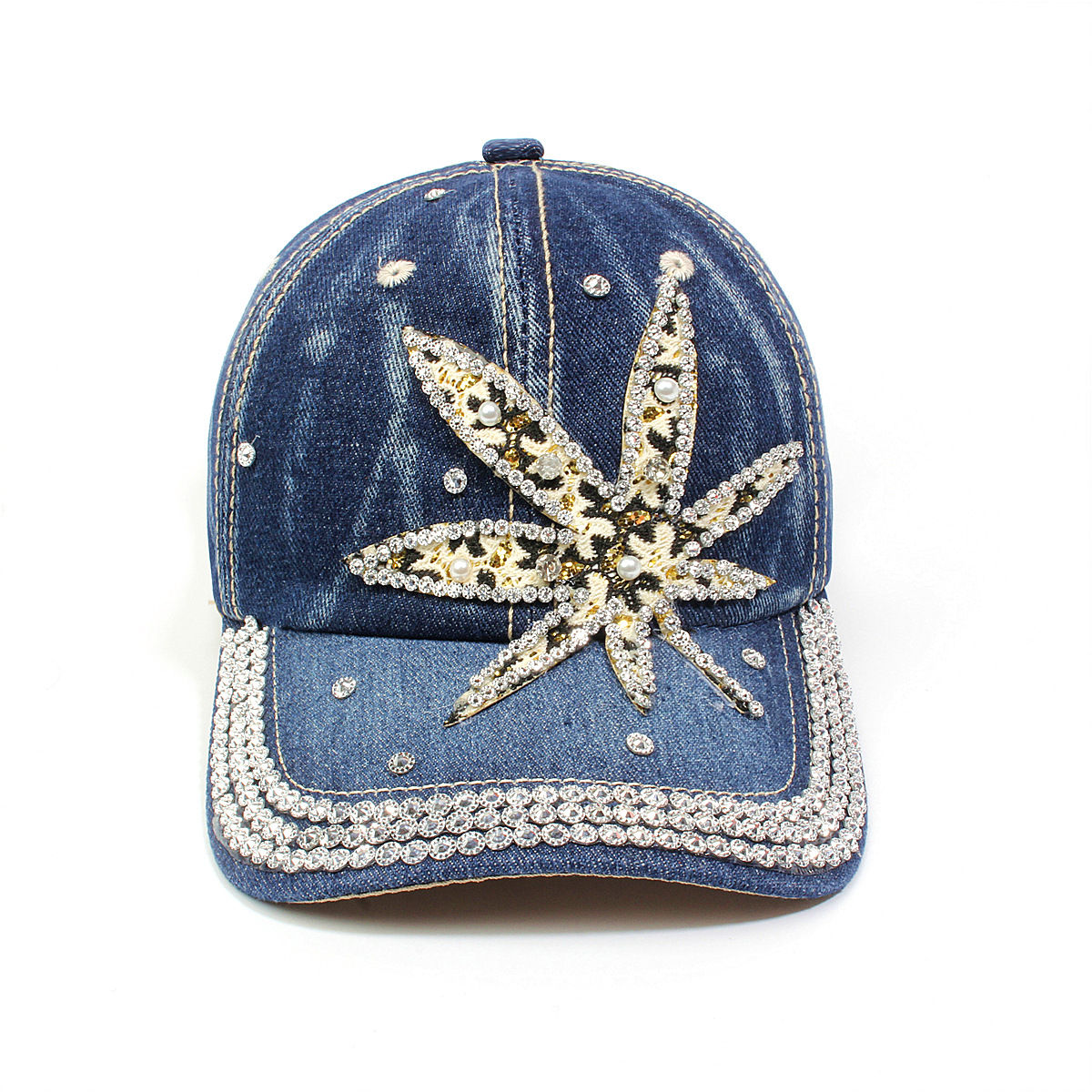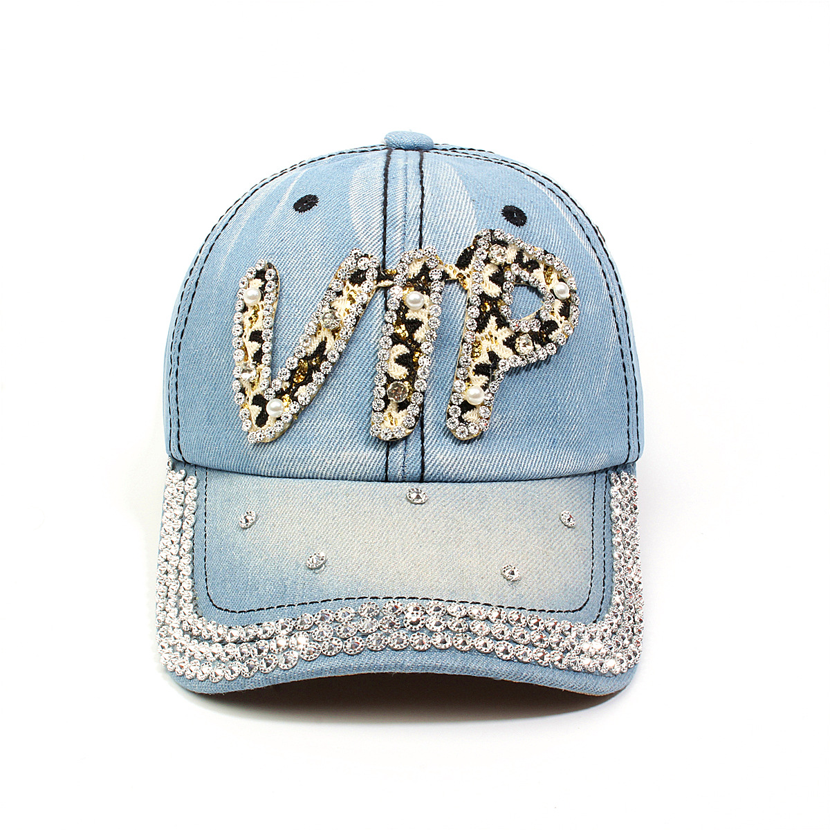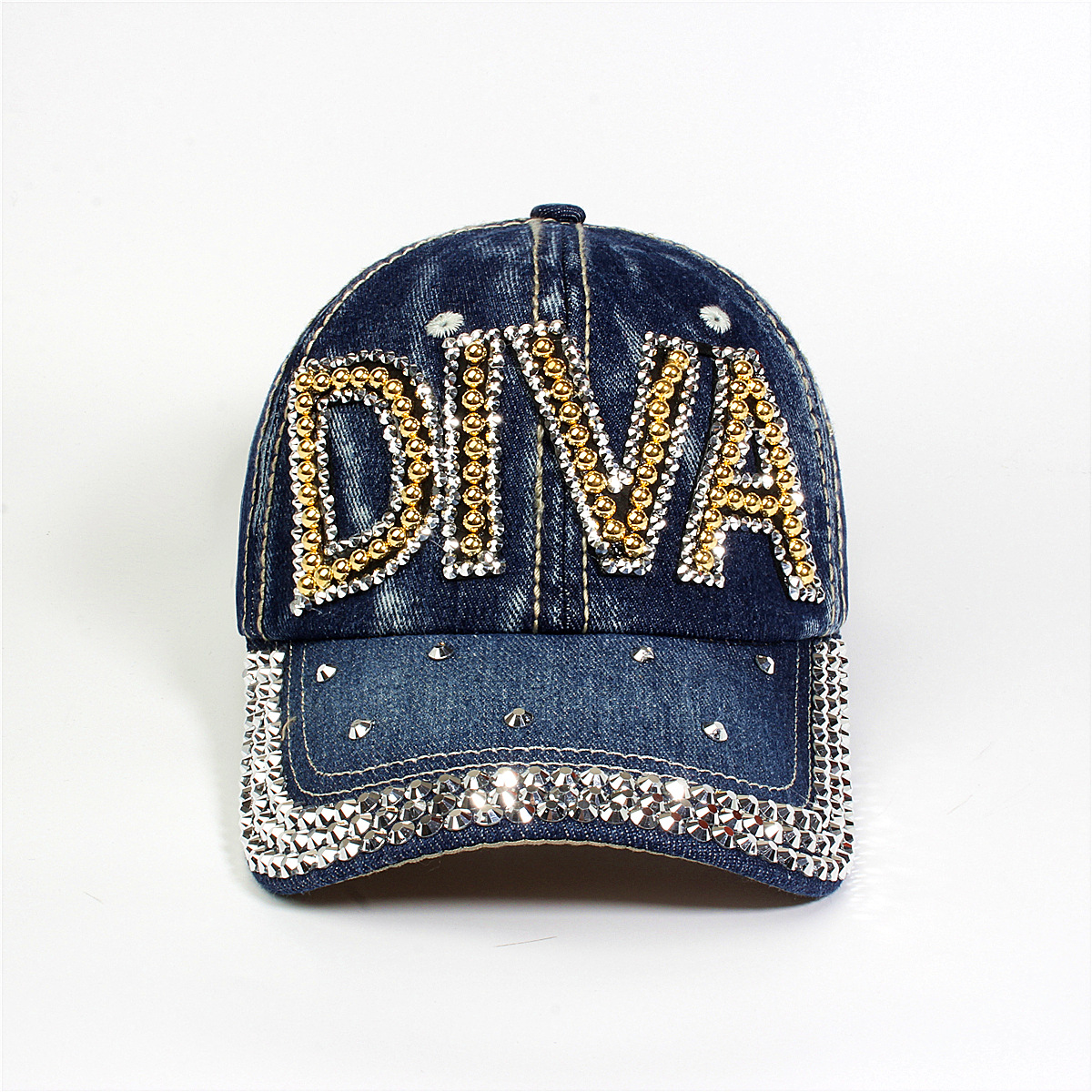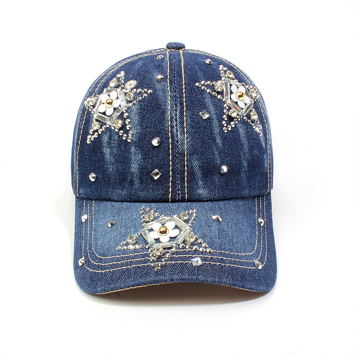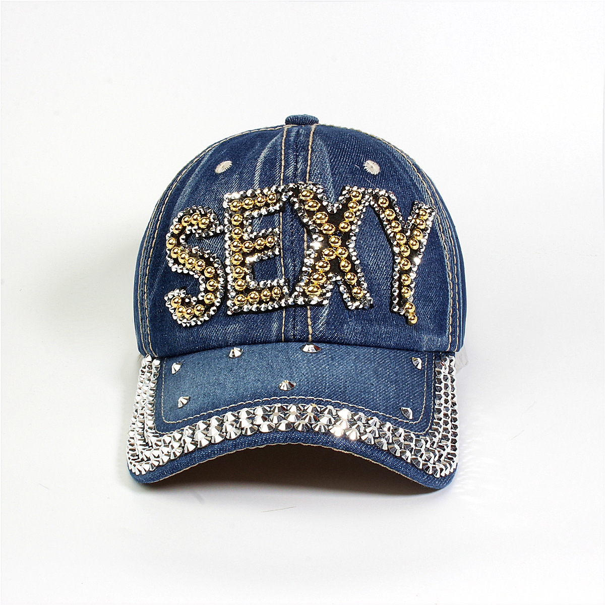 跨境外贸新款牛仔布女镶钻欧美国休闲成人棒球帽时尚洋气鸭舌帽子