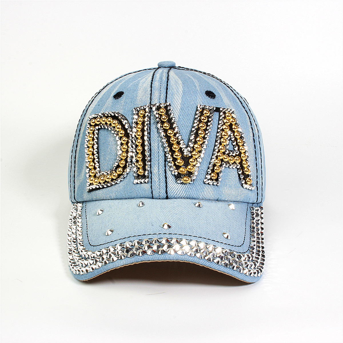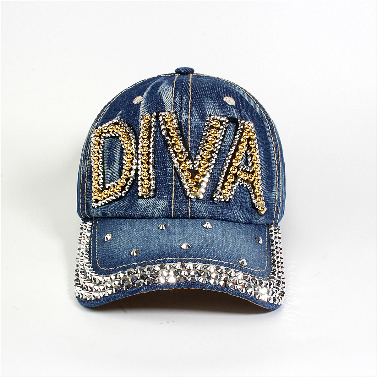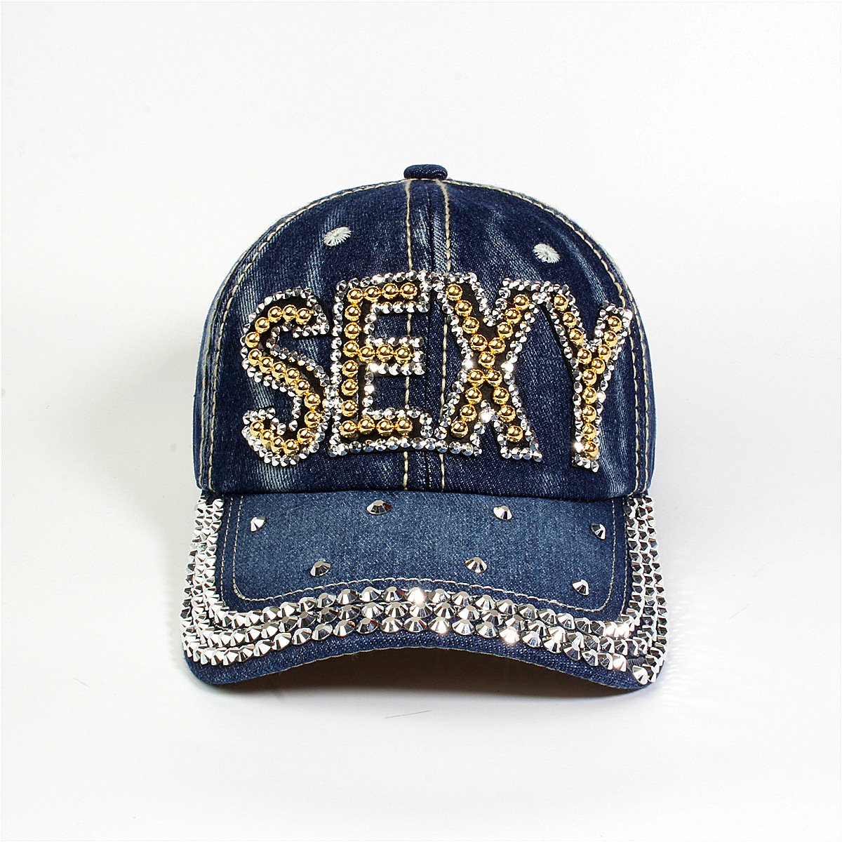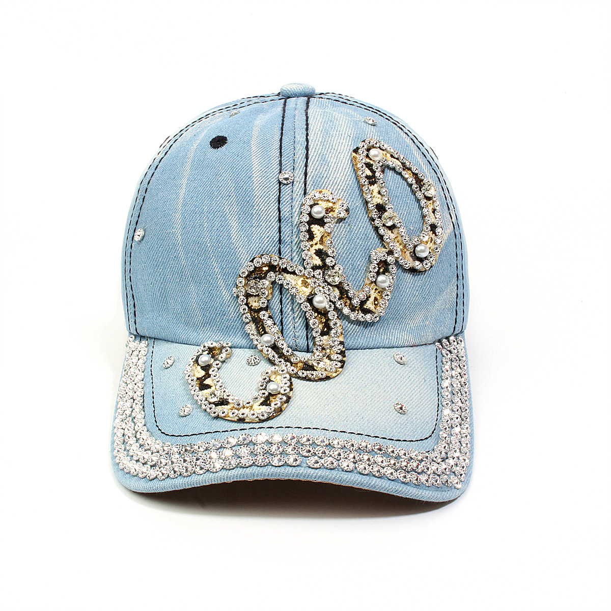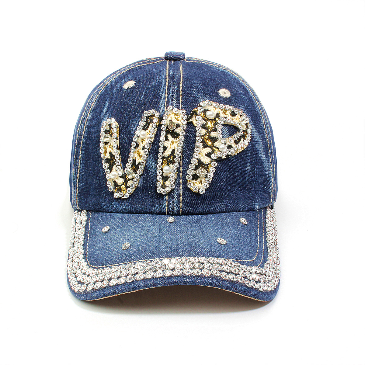 跨境外贸新款牛仔布女镶钻欧美国休闲成人棒球帽时尚洋气鸭舌帽子
