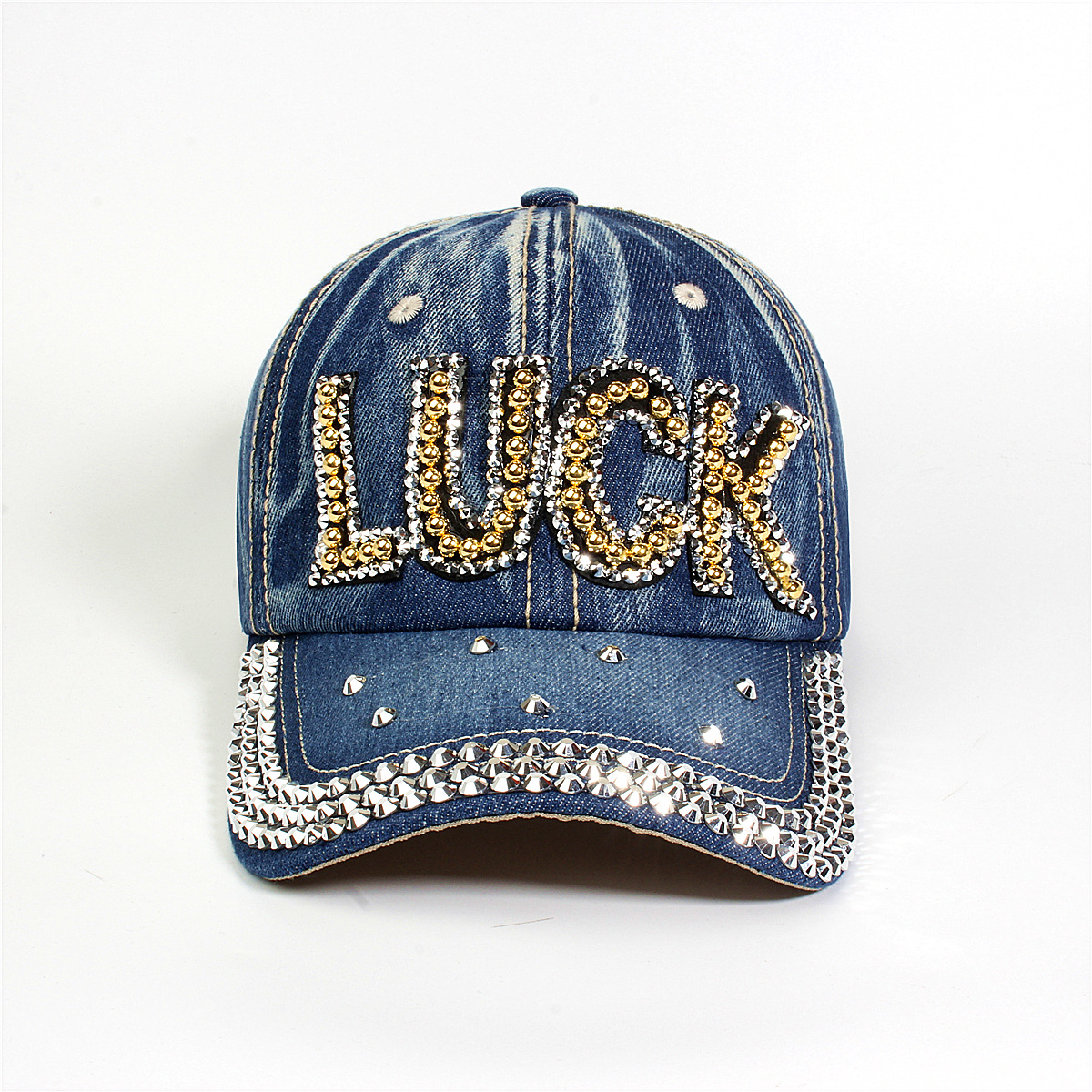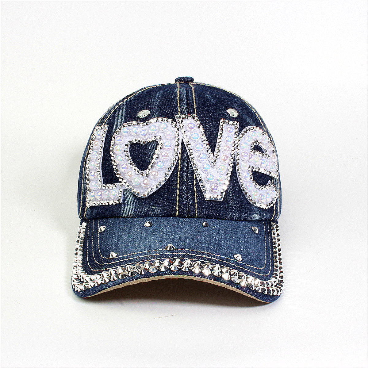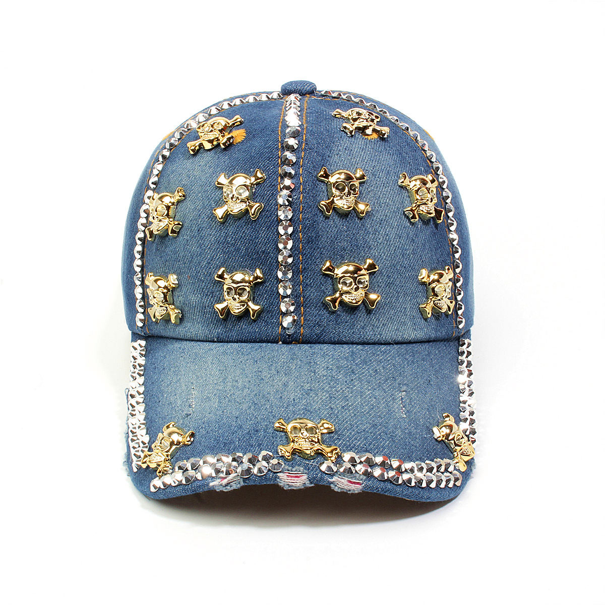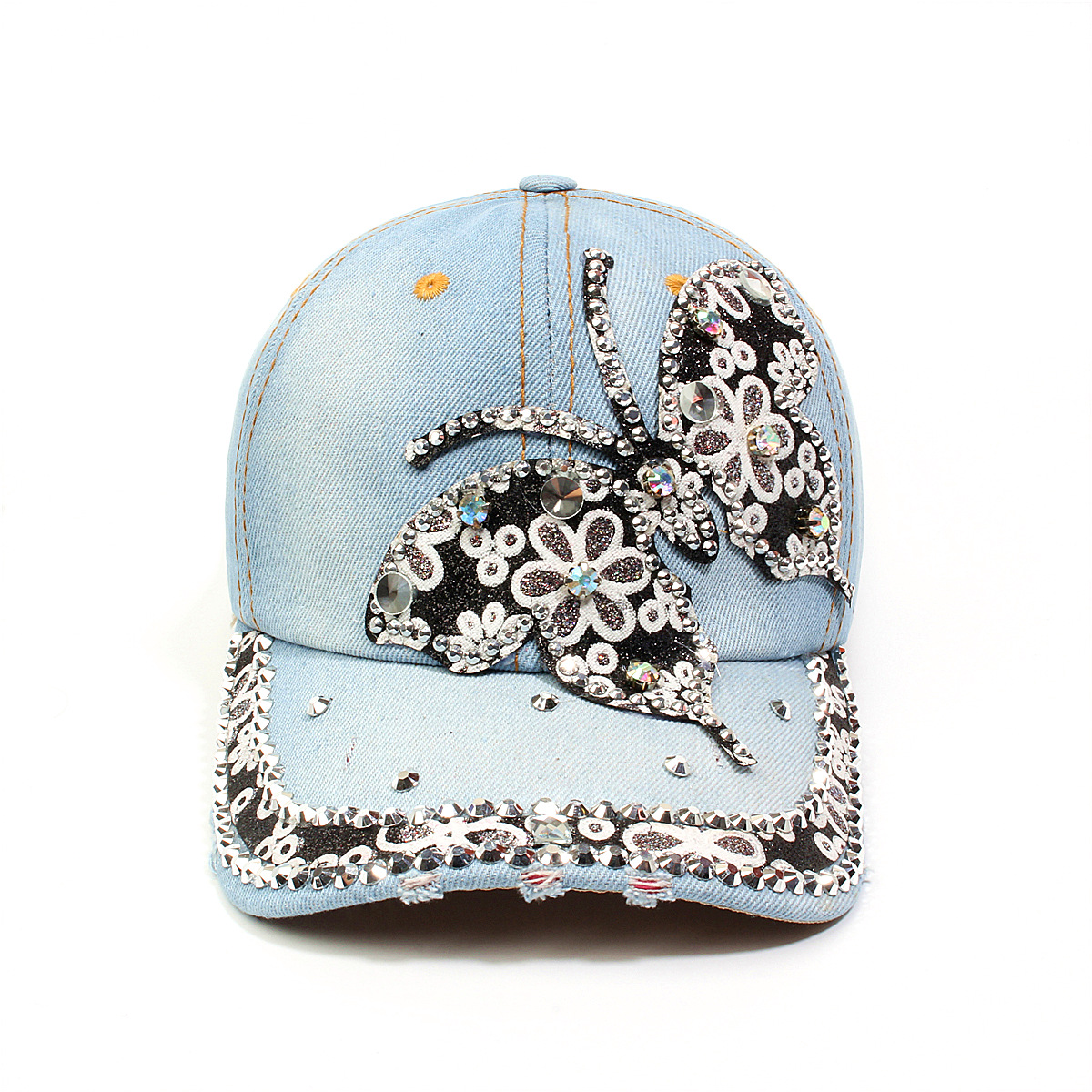 跨境外贸新款牛仔布女镶钻欧美国休闲成人棒球帽时尚洋气鸭舌帽子