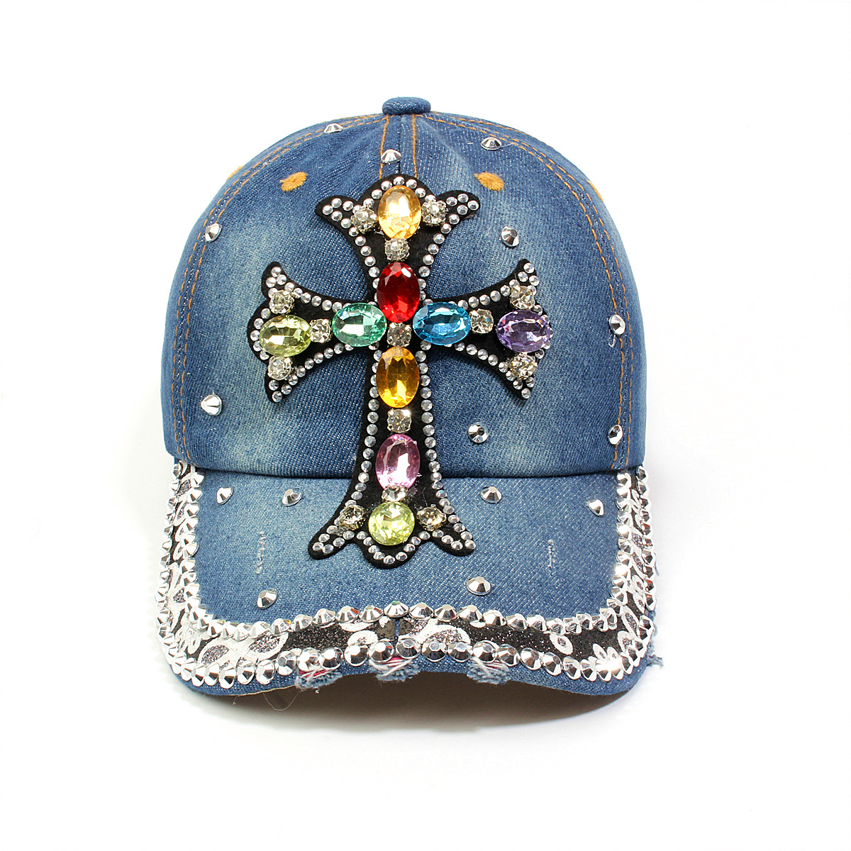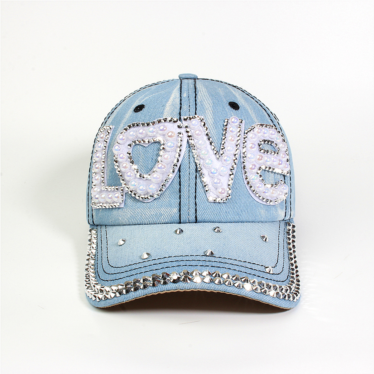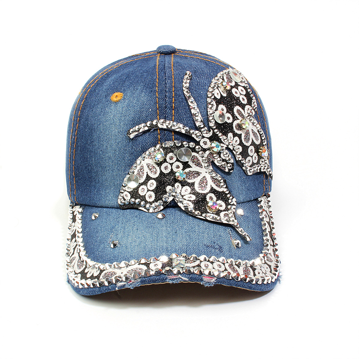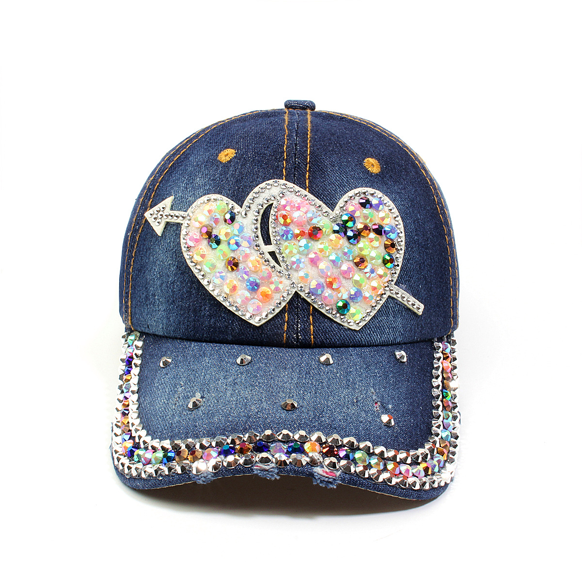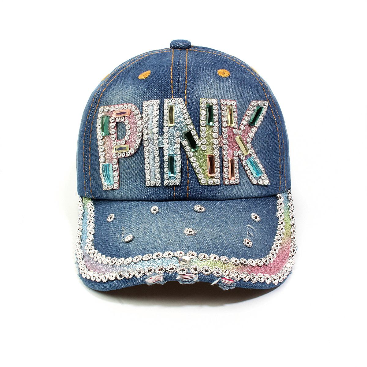 跨境外贸新款牛仔布女镶钻欧美国休闲成人棒球帽时尚洋气鸭舌帽子