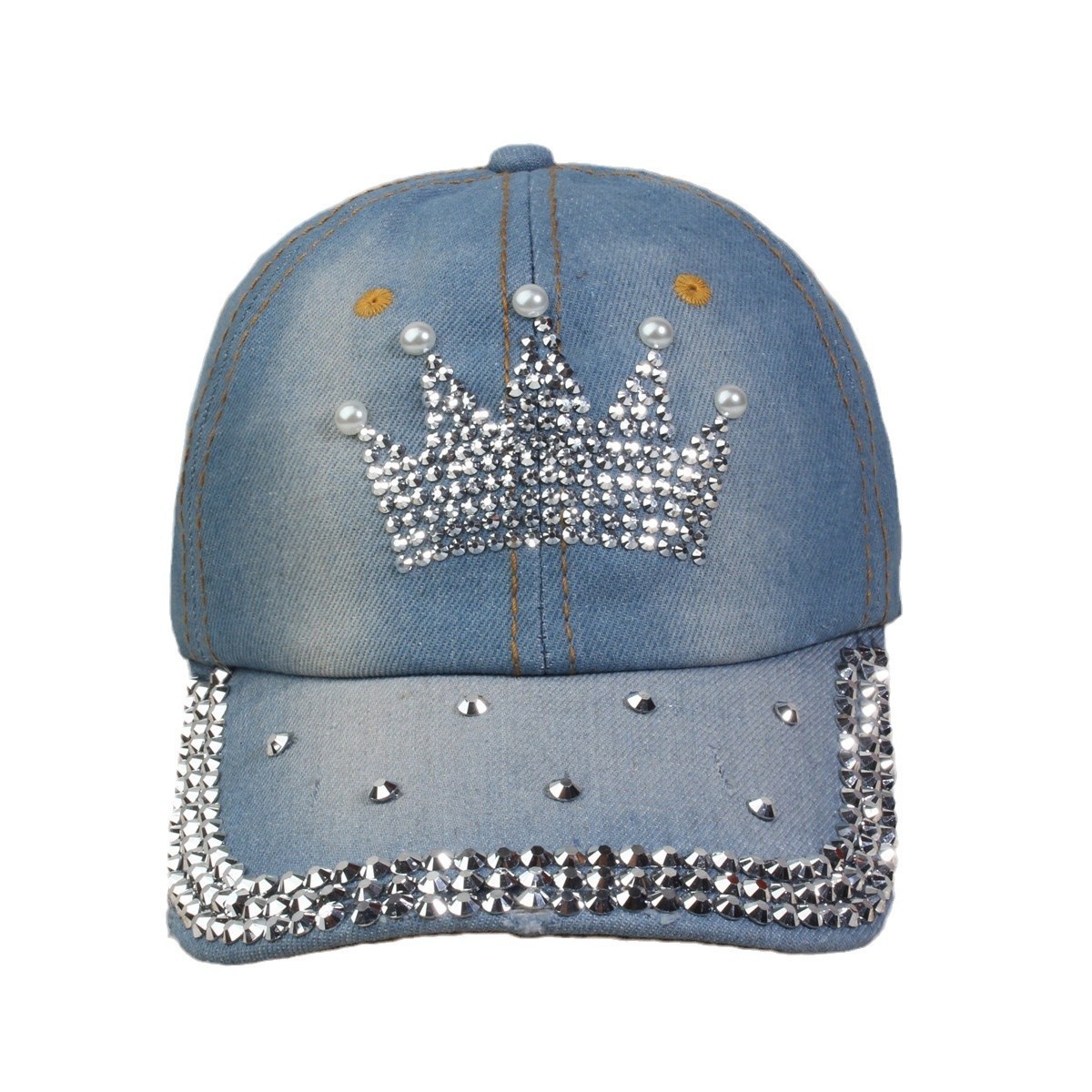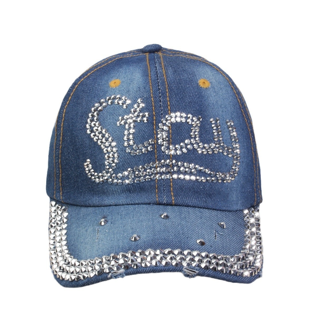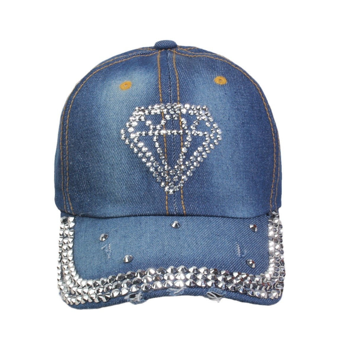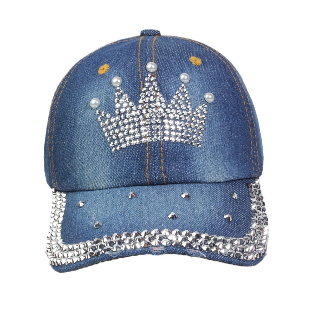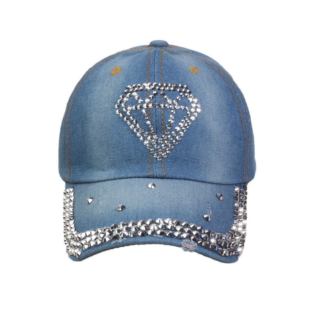 牛仔镶钻棒球帽弯檐男帽女帽百搭款遮阳鸭舌帽夏季休闲百搭帽子