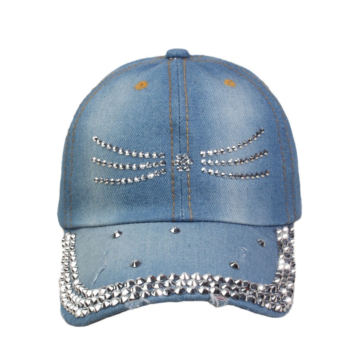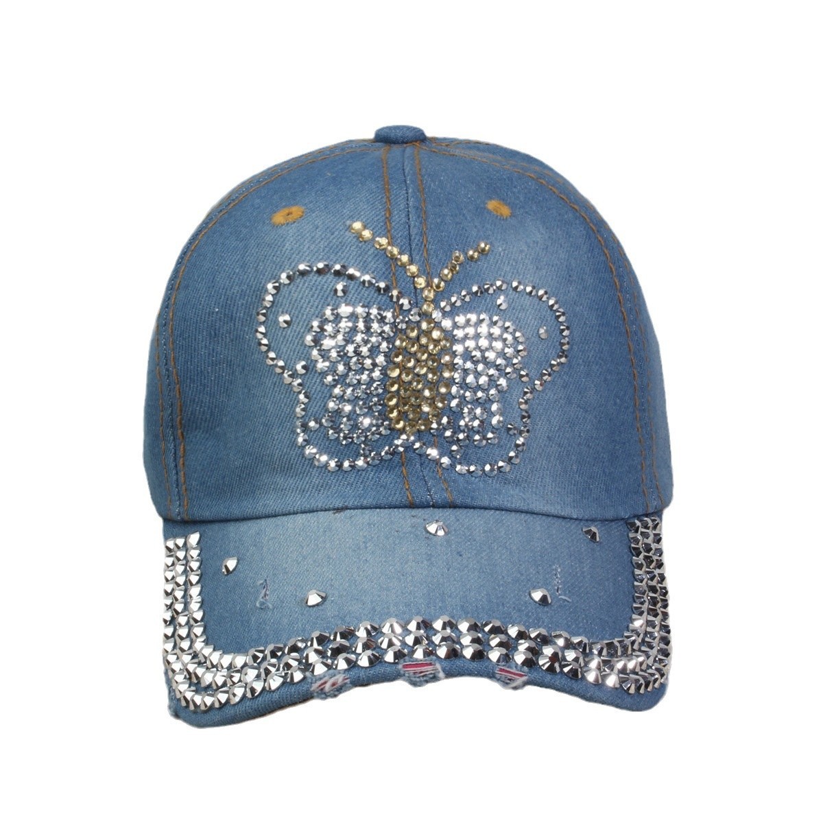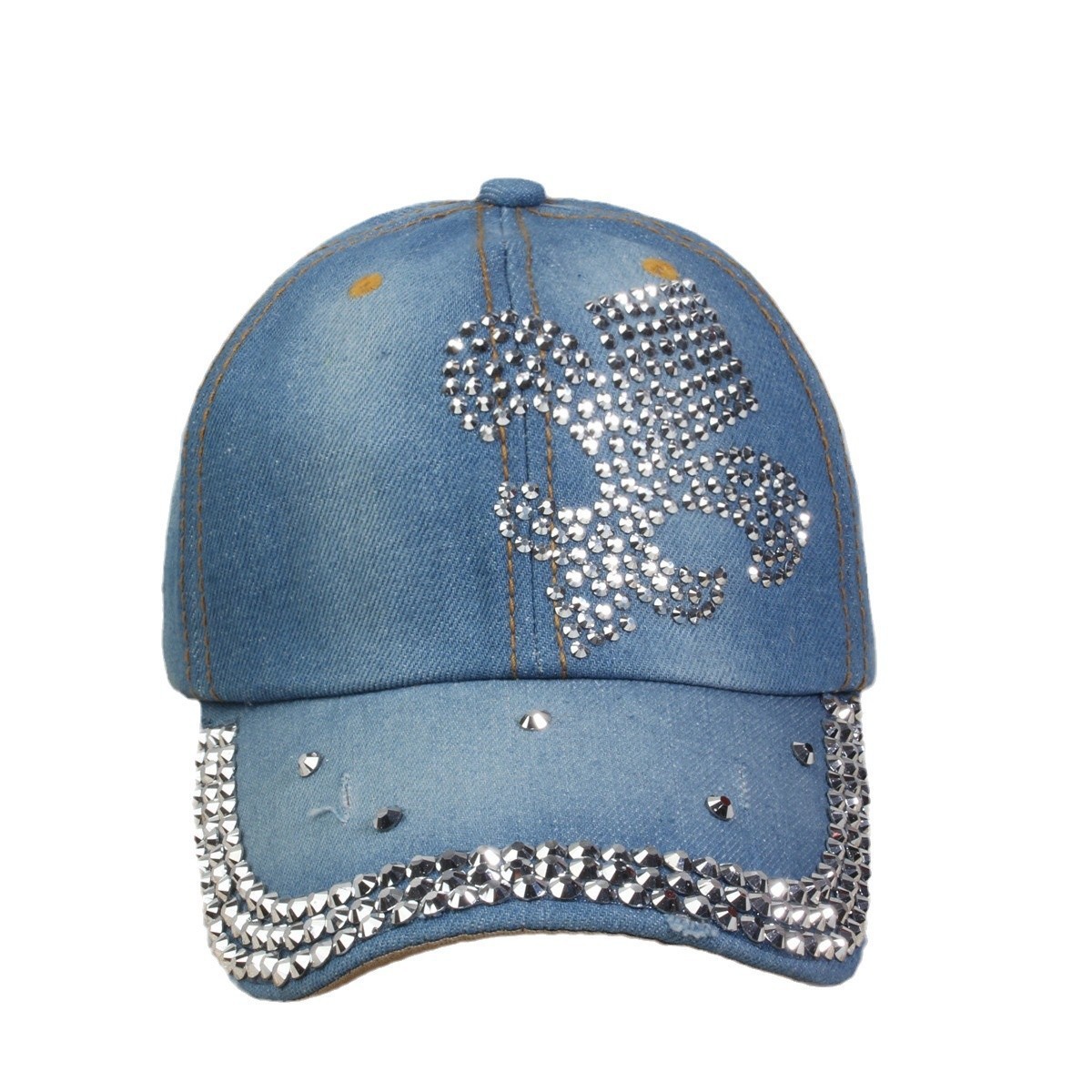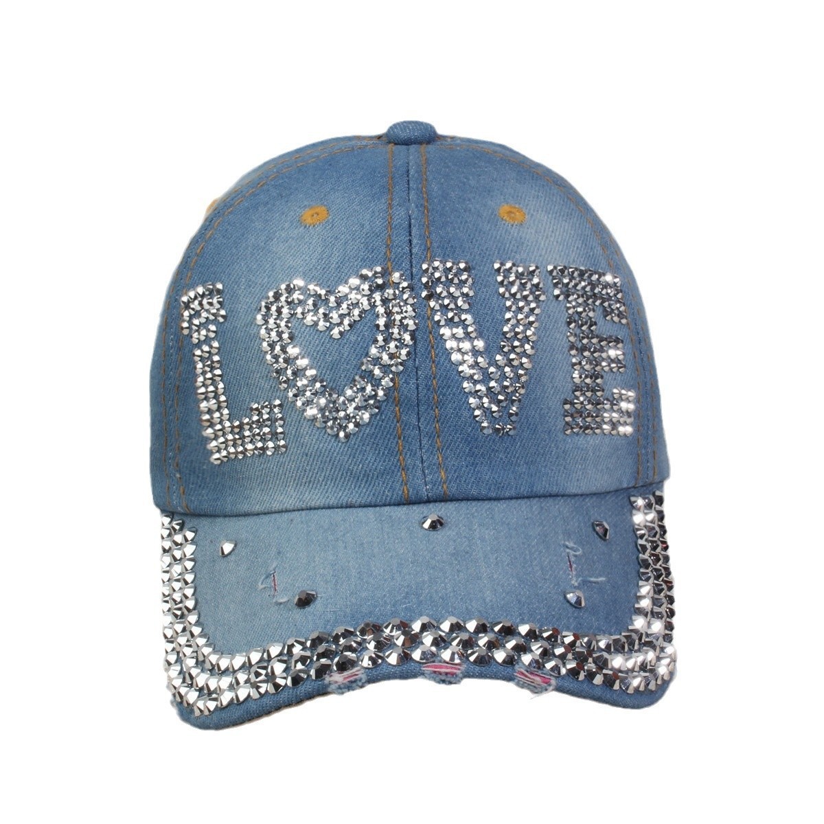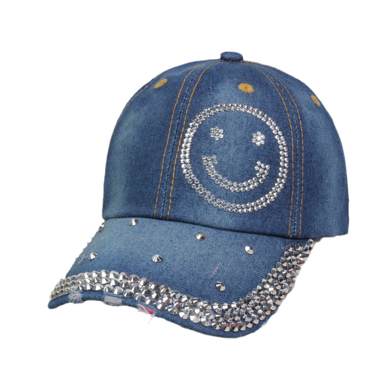 牛仔镶钻棒球帽弯檐男帽女帽百搭款遮阳鸭舌帽夏季休闲百搭帽子
