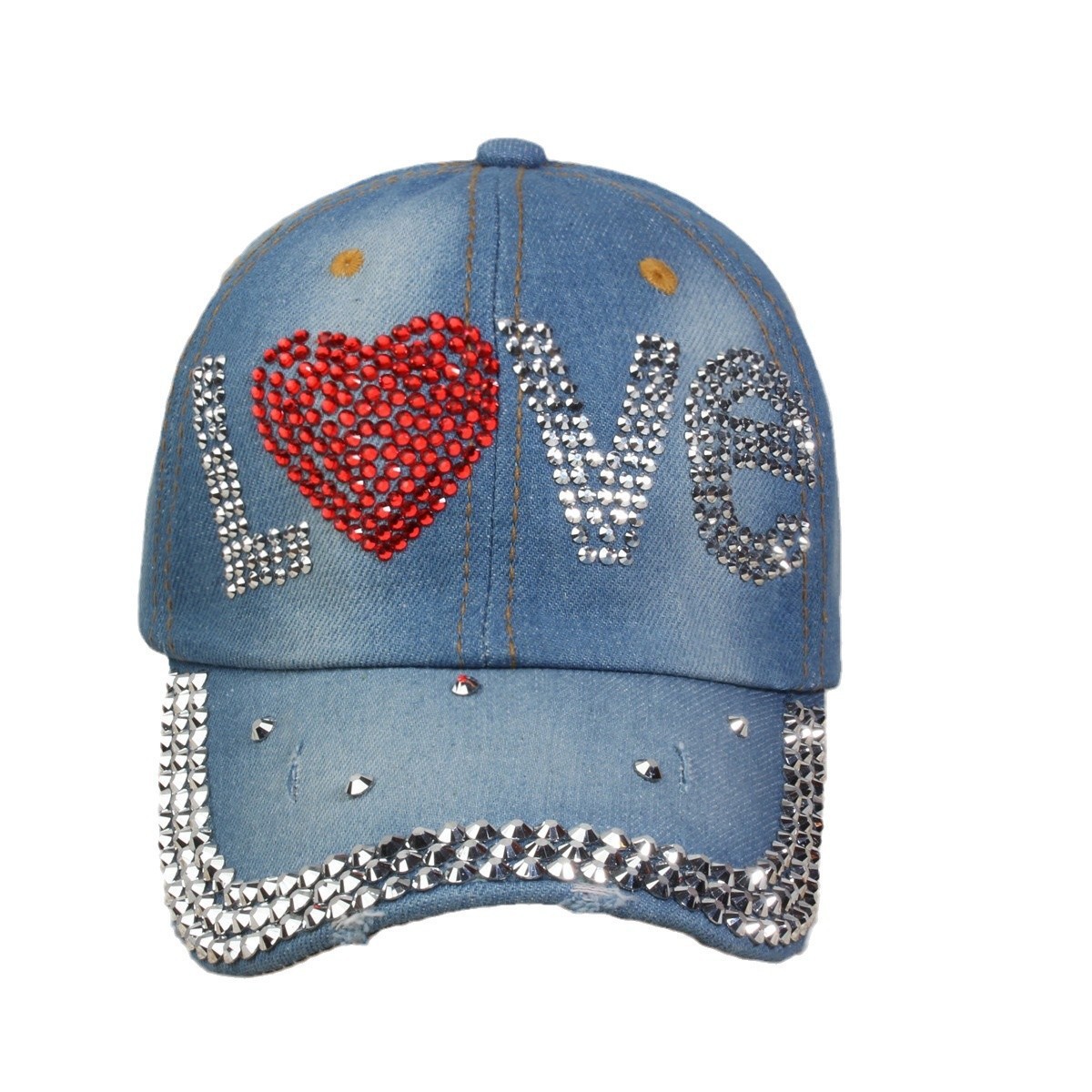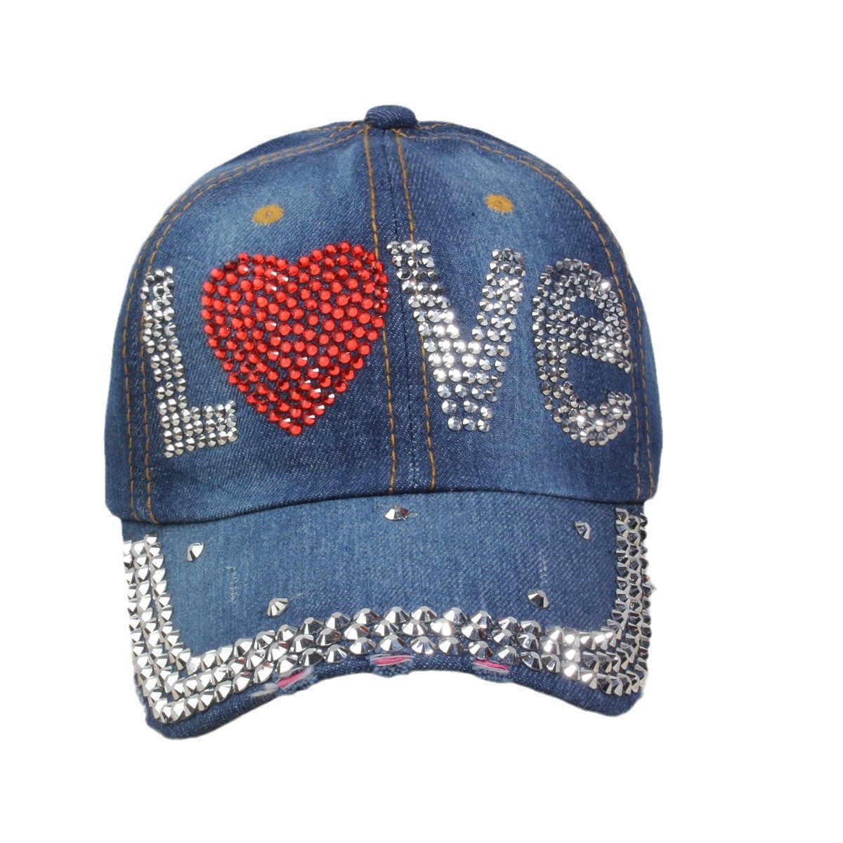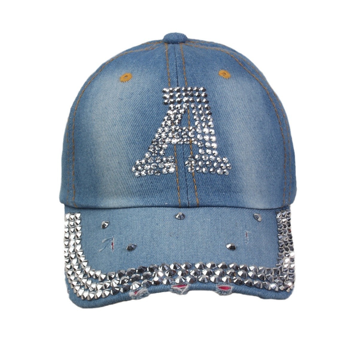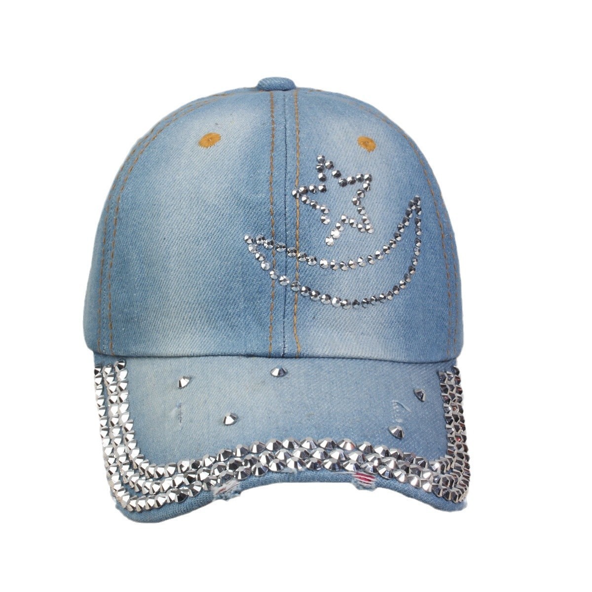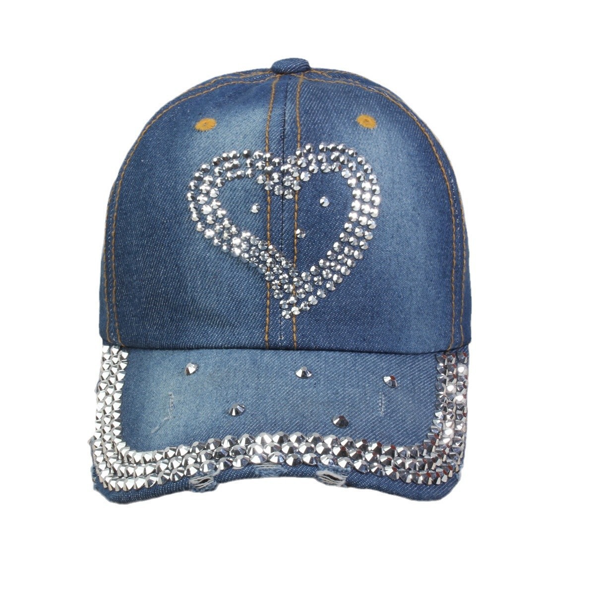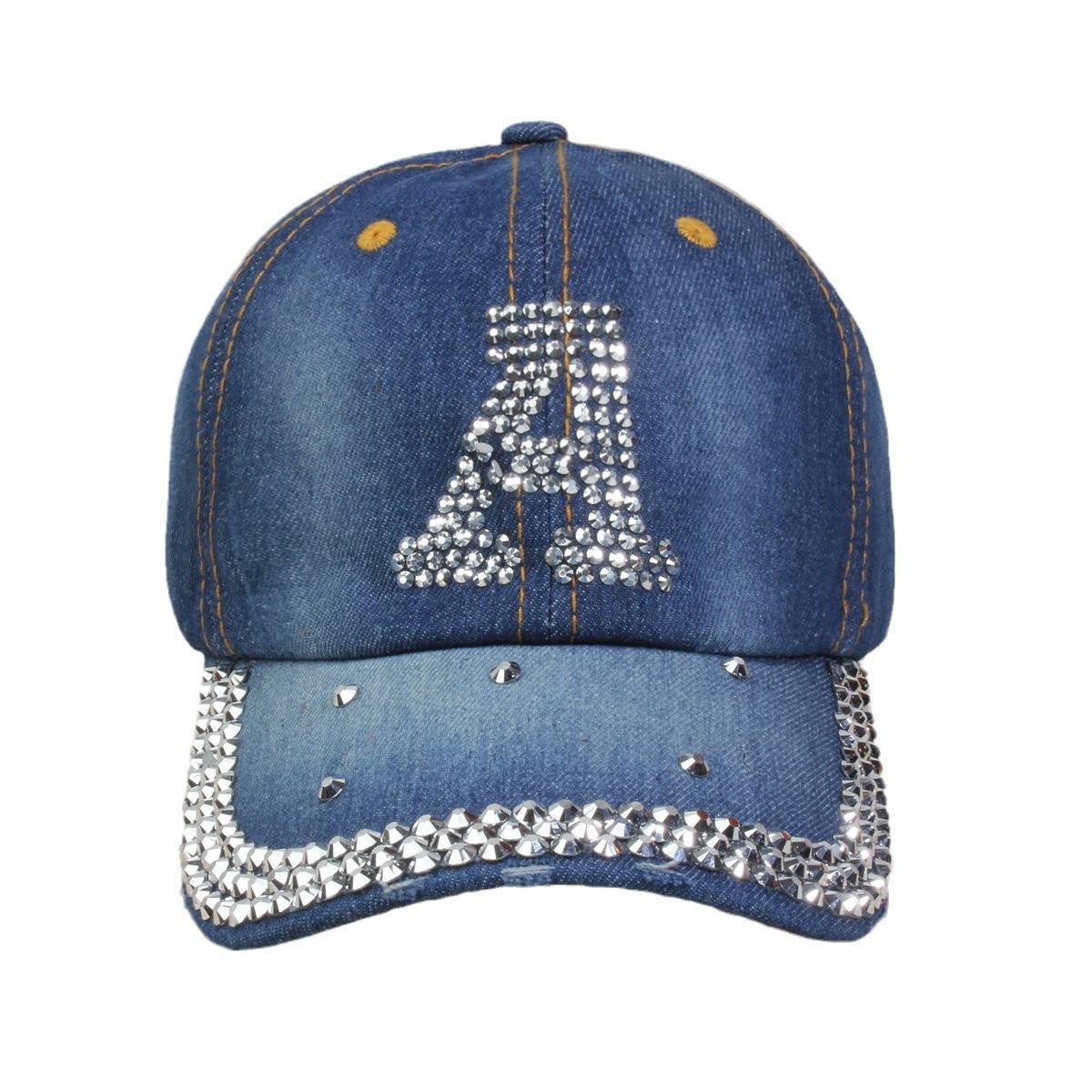 牛仔镶钻棒球帽弯檐男帽女帽百搭款遮阳鸭舌帽夏季休闲百搭帽子