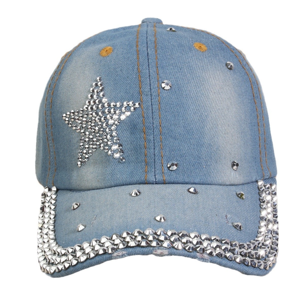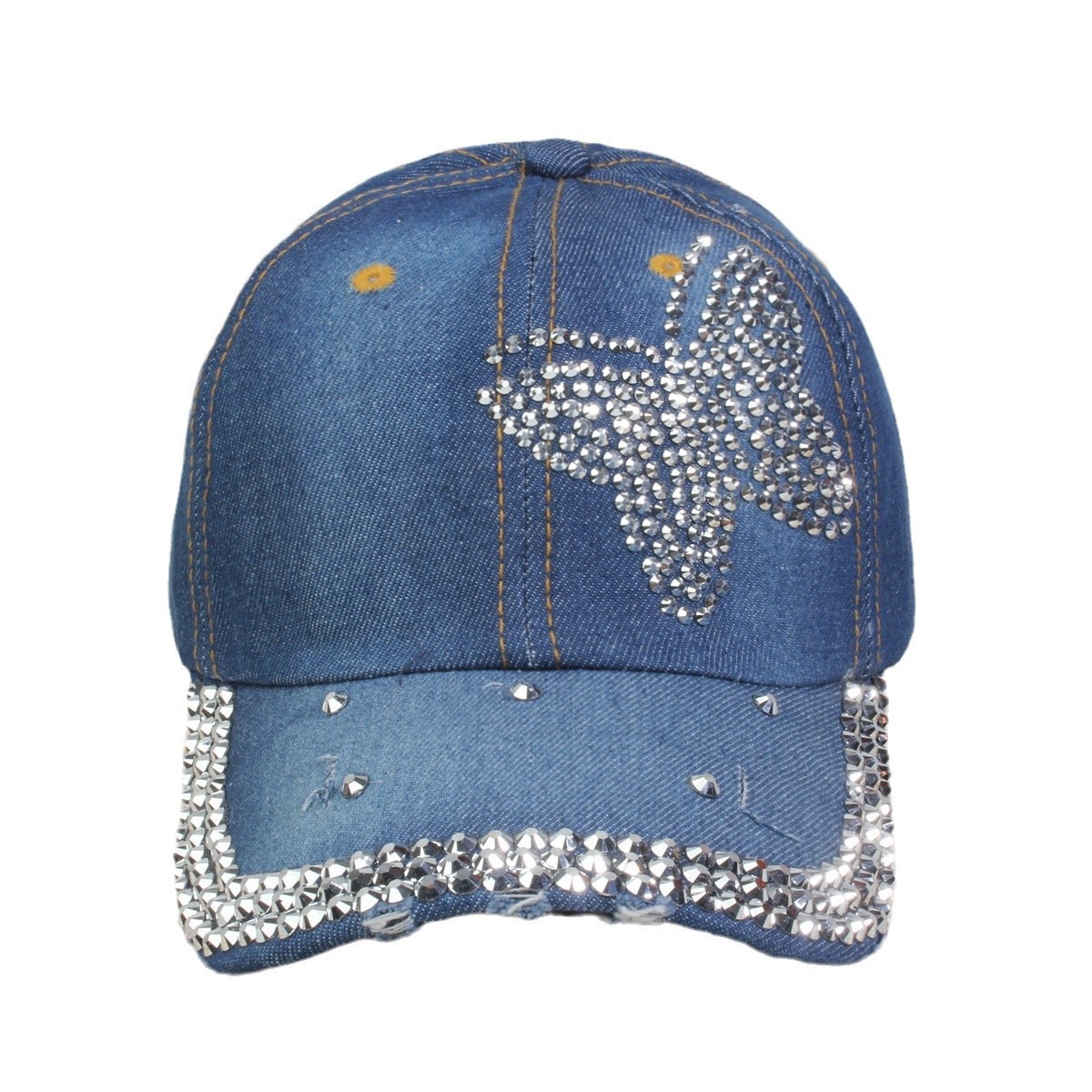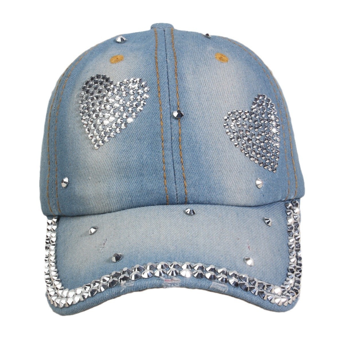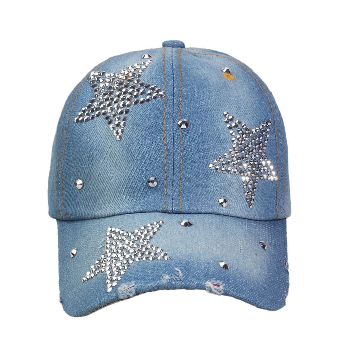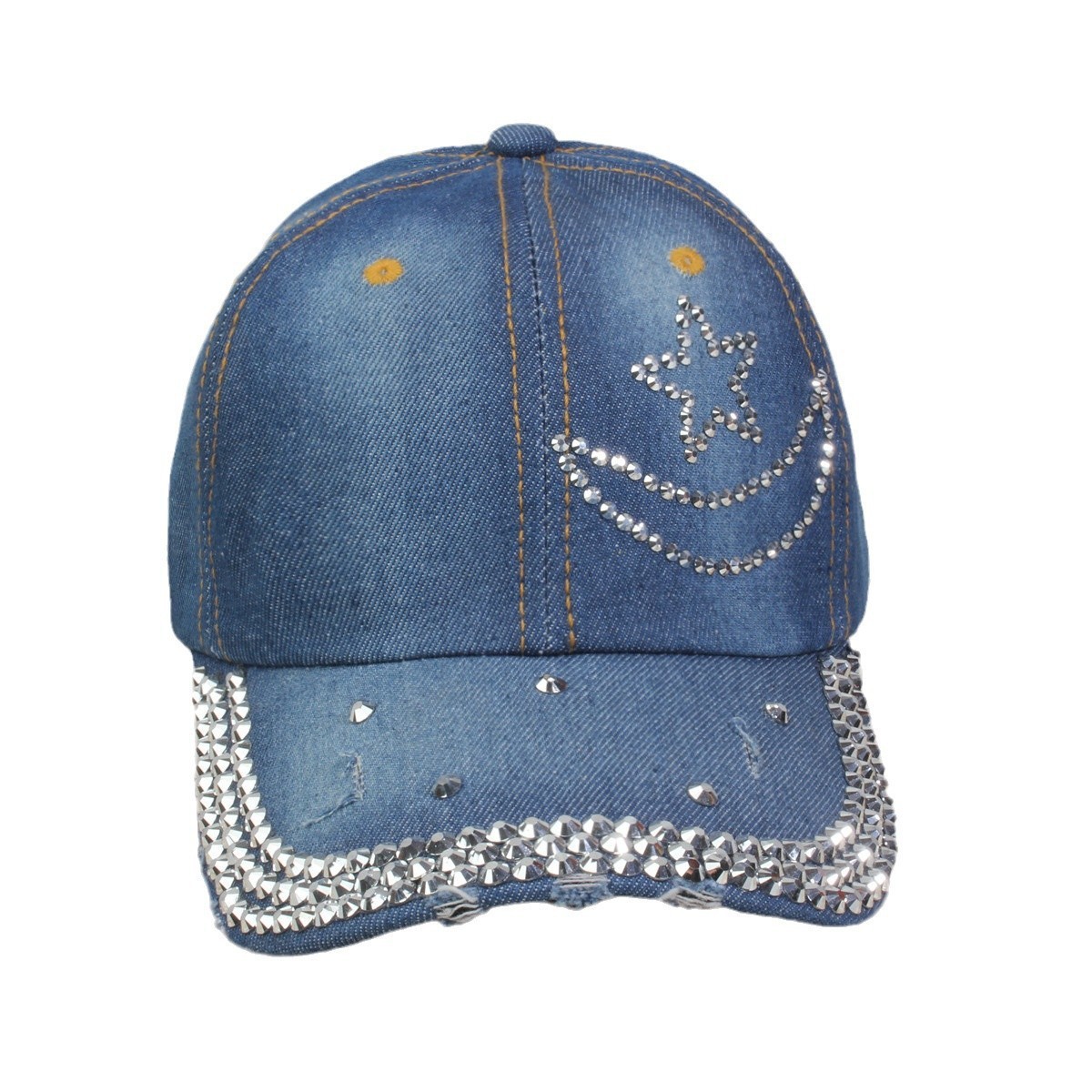 牛仔镶钻棒球帽弯檐男帽女帽百搭款遮阳鸭舌帽夏季休闲百搭帽子