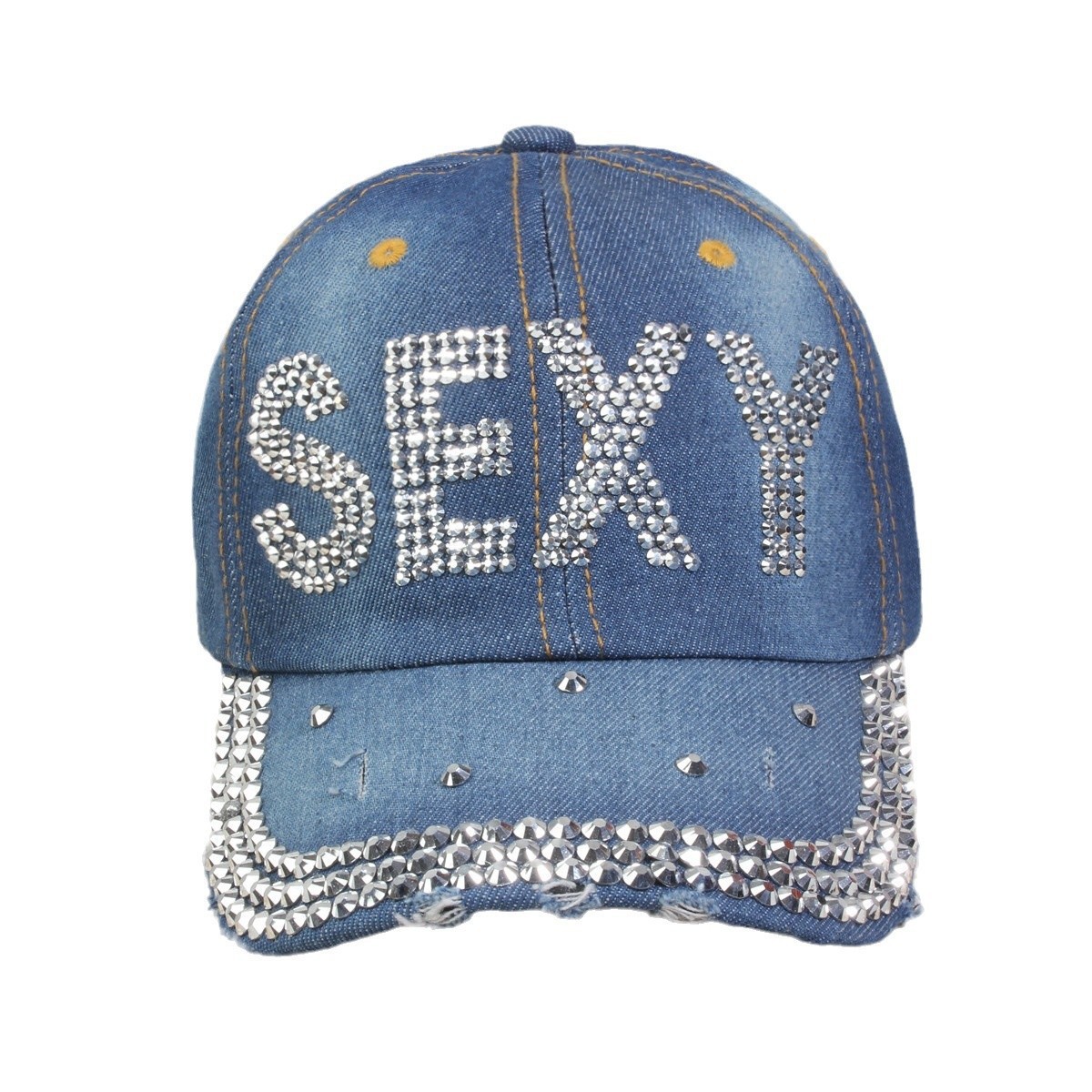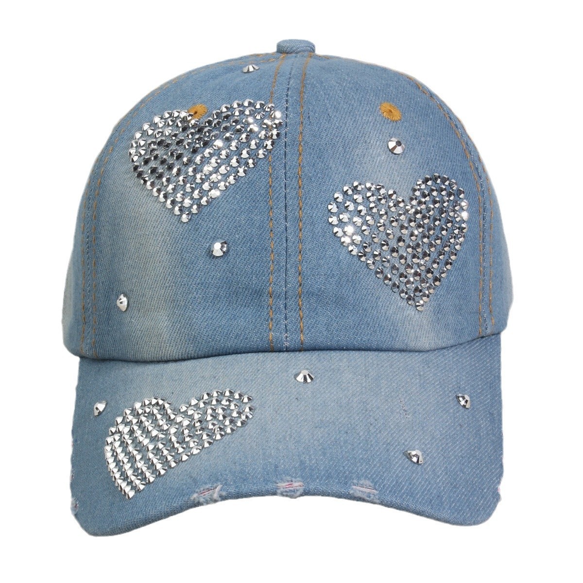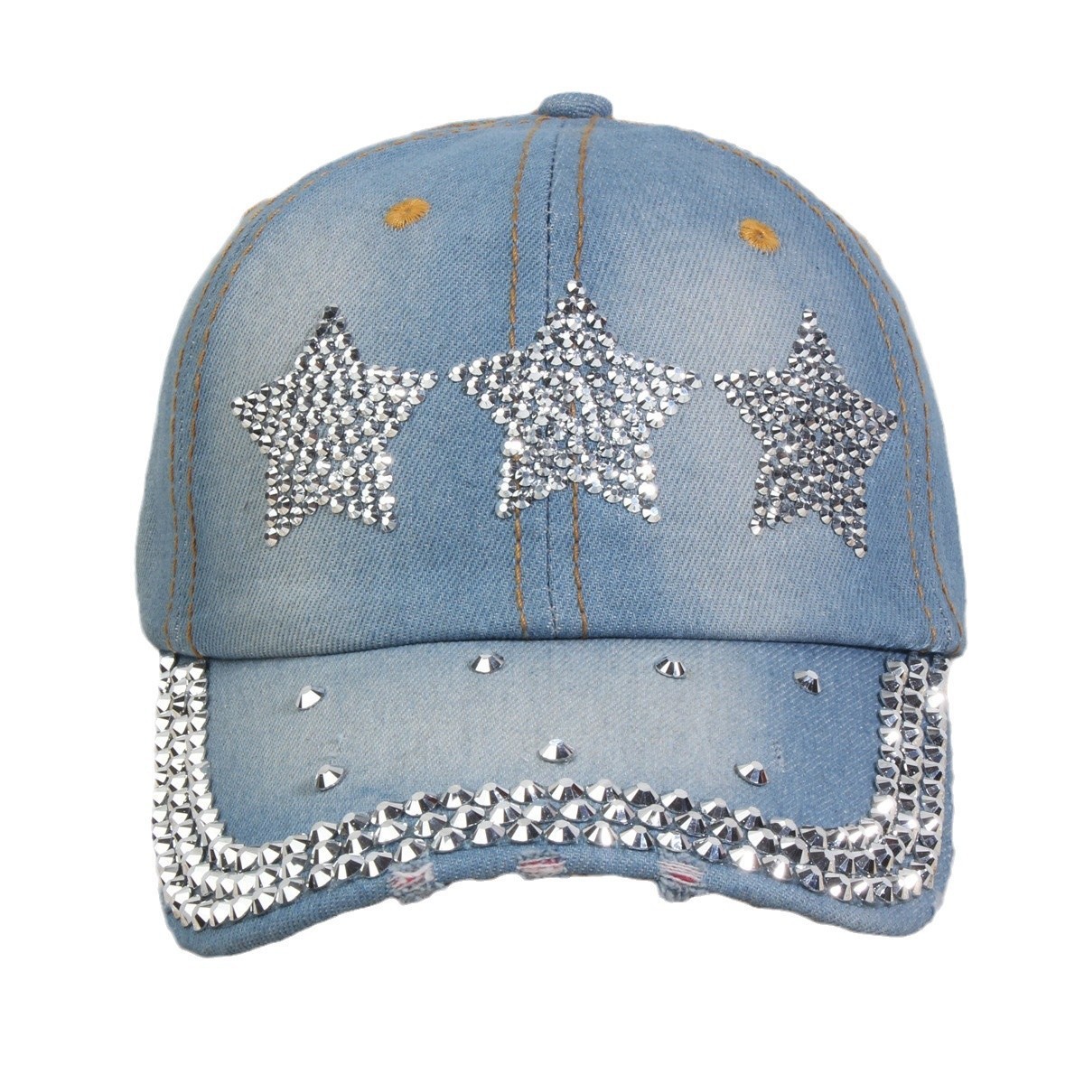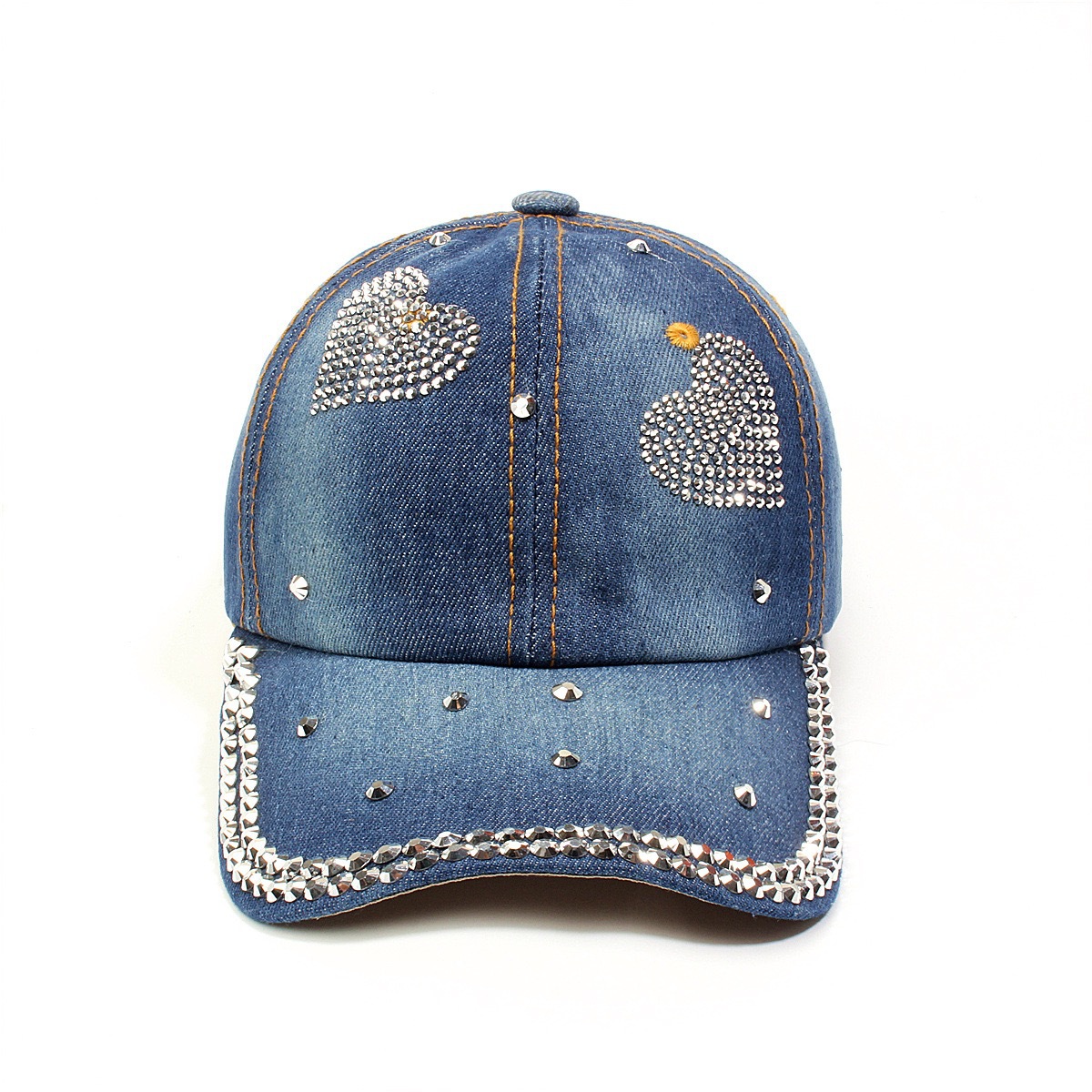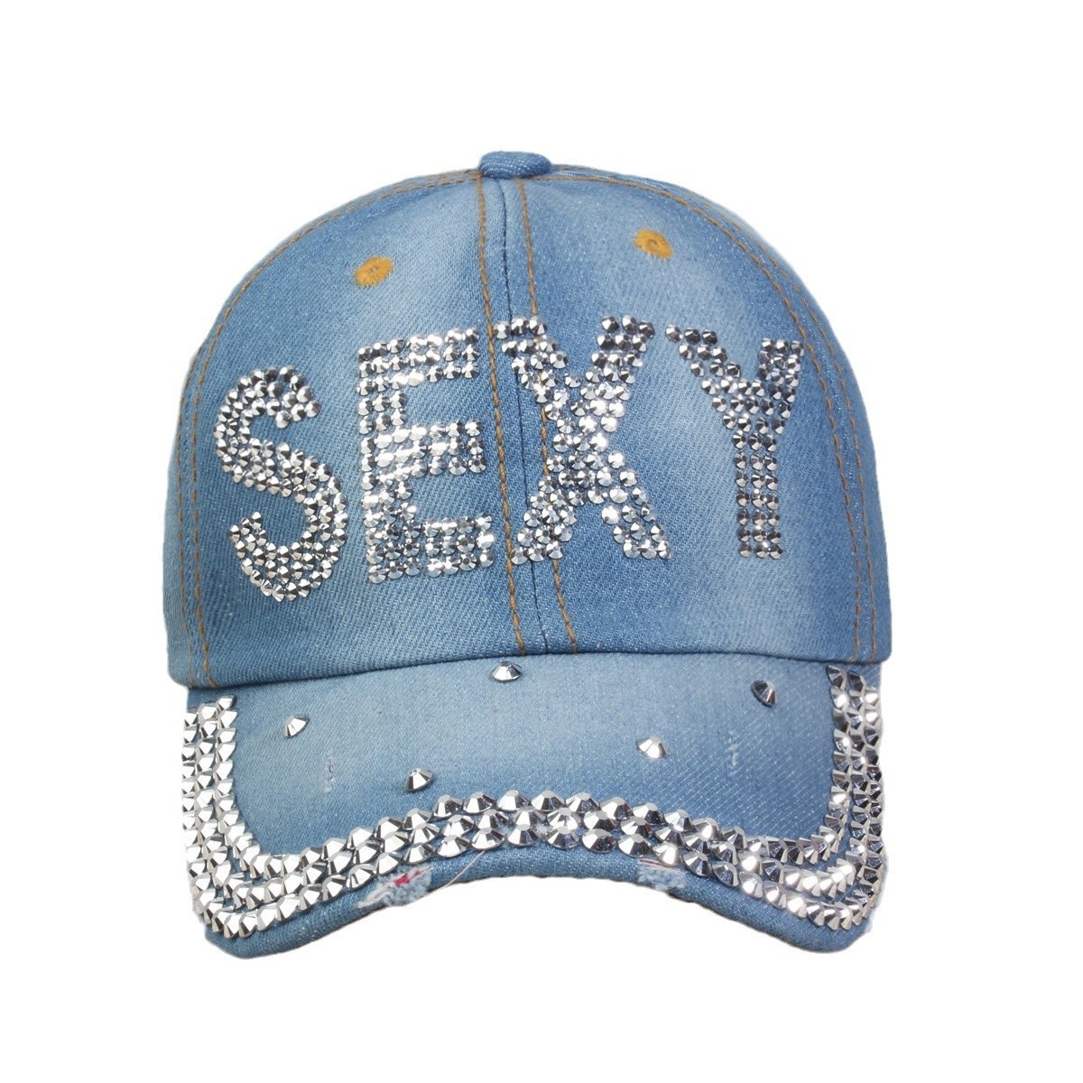 牛仔镶钻棒球帽弯檐男帽女帽百搭款遮阳鸭舌帽夏季休闲百搭帽子
