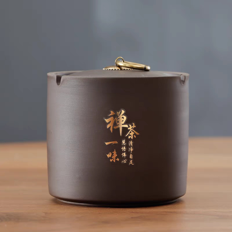 禅茶一味-紫砂带盖烟灰缸