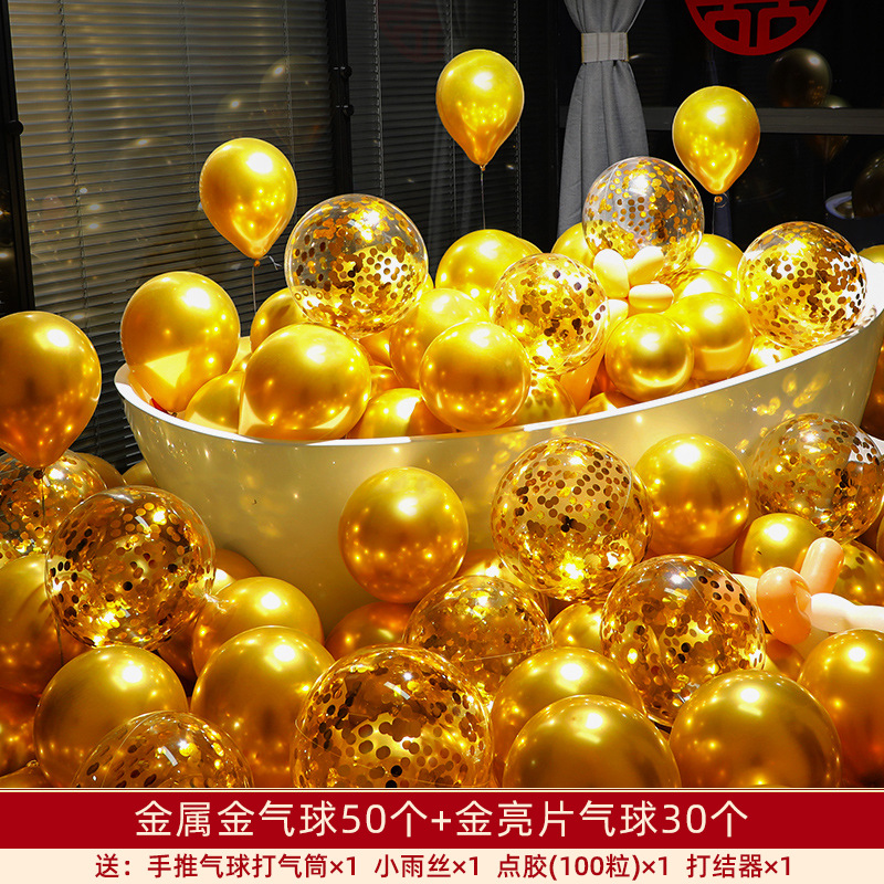 金色气球装饰金属金黄色多款加厚红色结婚生日周岁场景布置金气球