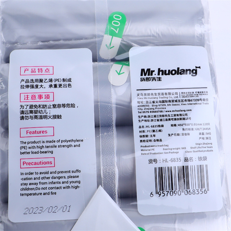 6835平口垃圾袋(45*55CM银灰色铁袋120只/包)
