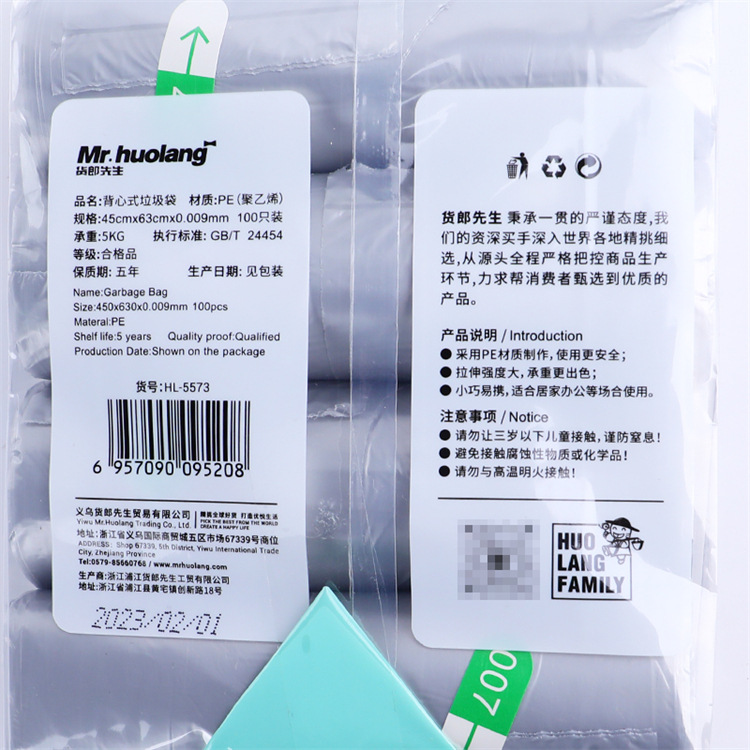 5573背心垃圾袋(45*63CM银灰色铁袋100只/包)