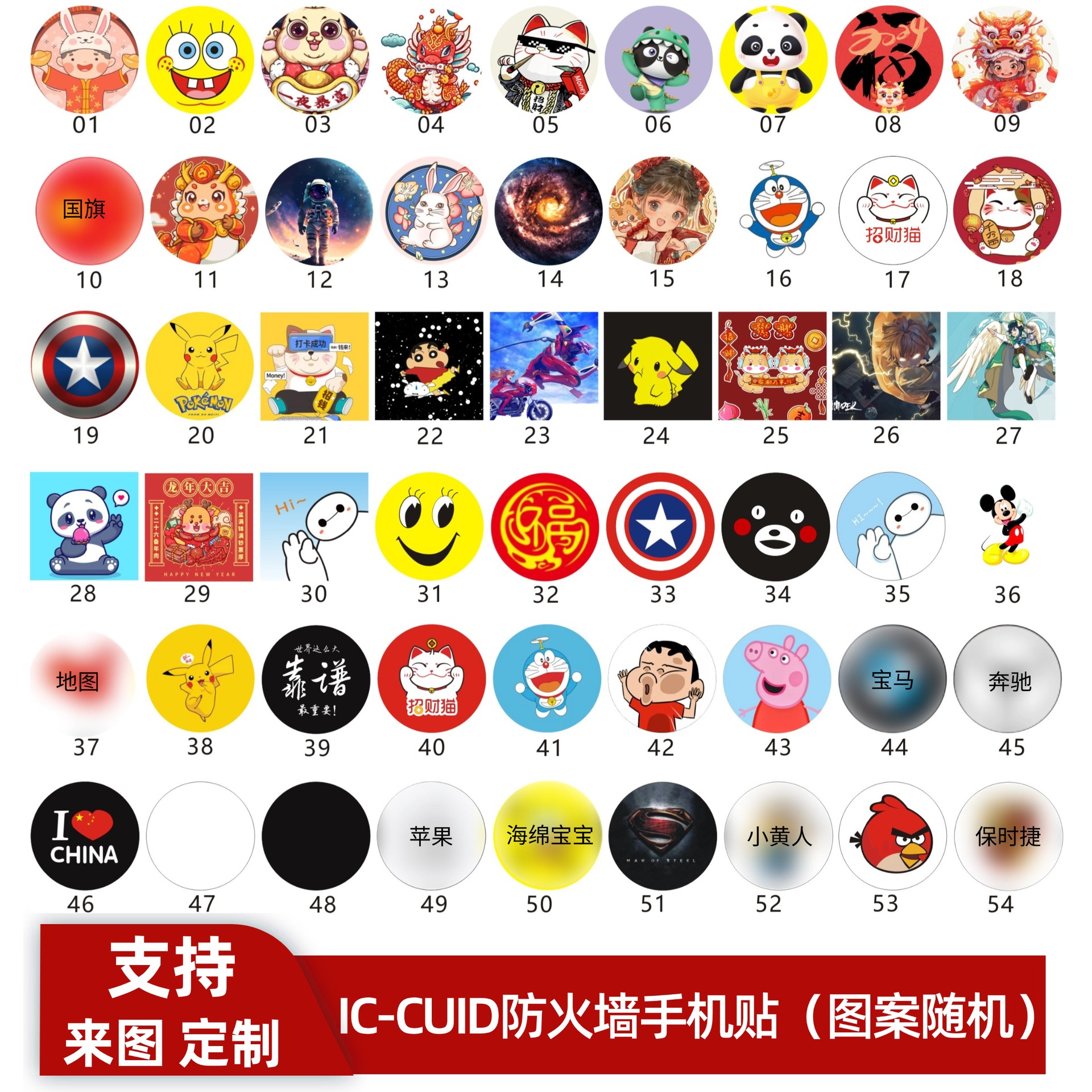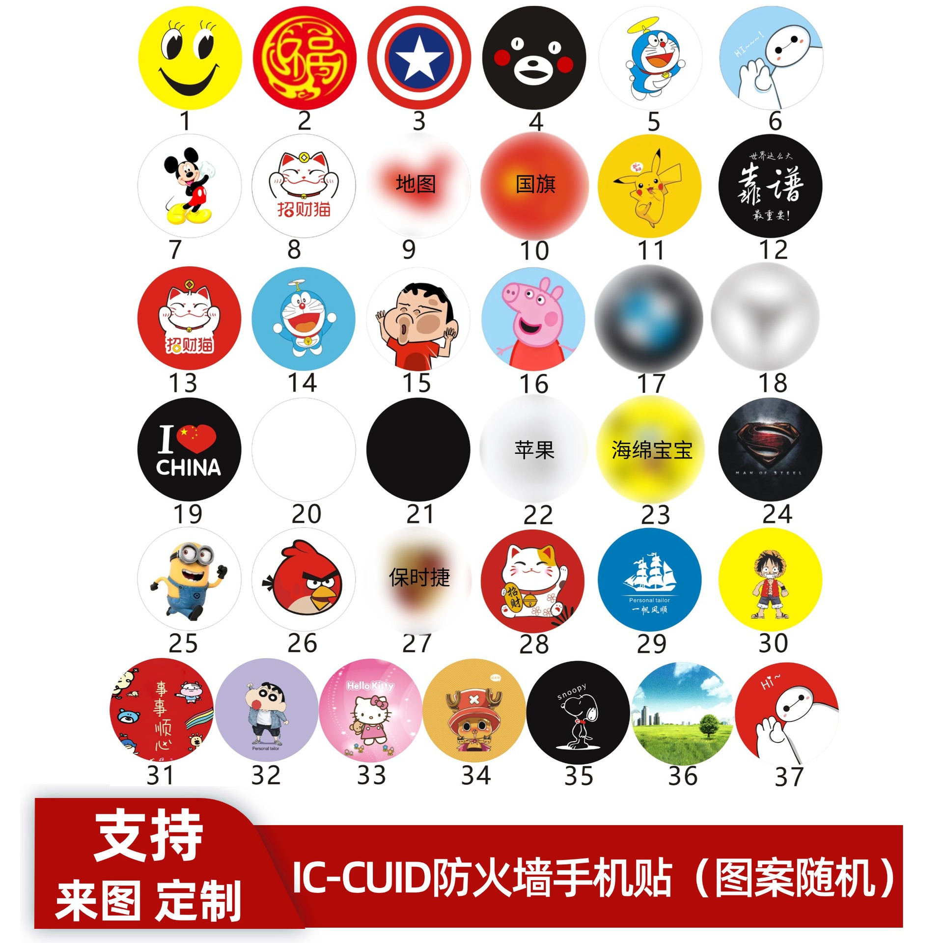 IC-CUID手机贴30mm 多图随机