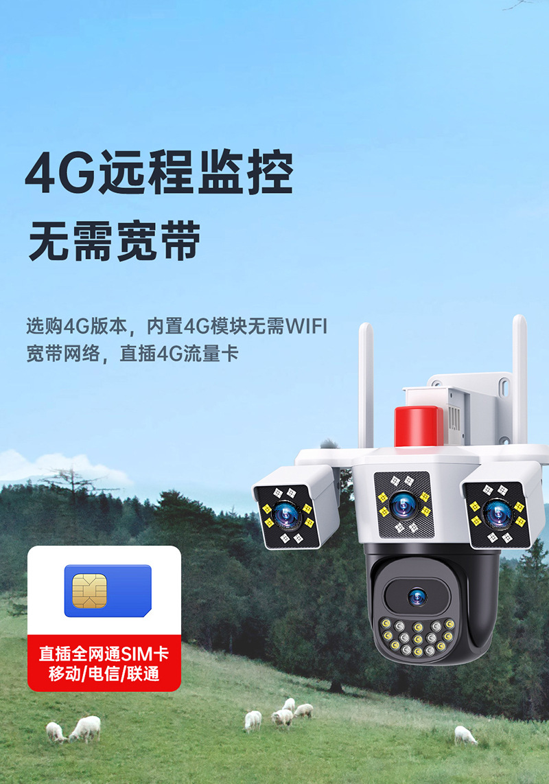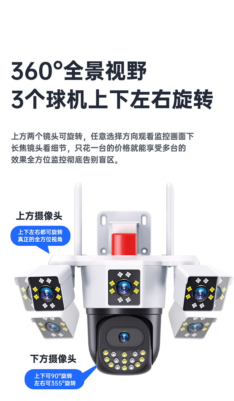 多镜头监控摄像头,三旋转监控摄像头,三镜头监控摄像头,无需充值摄像头,无需充值,免流量,监控,无线监控摄像头,WIFI摄像头