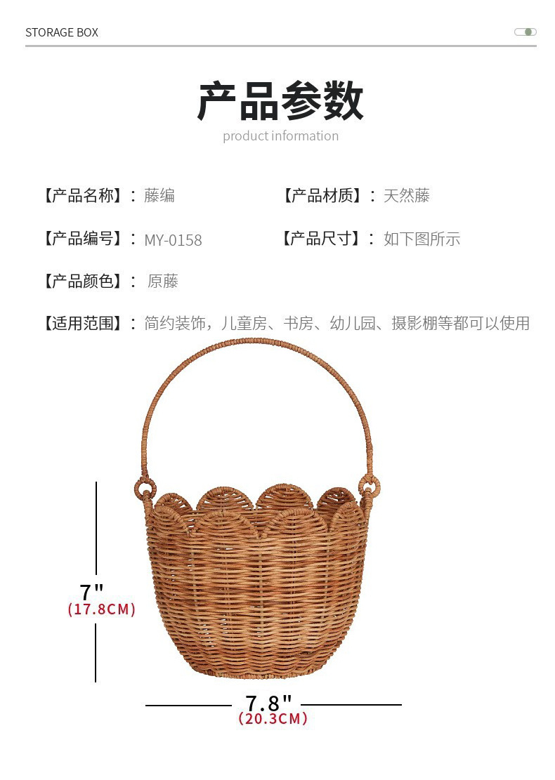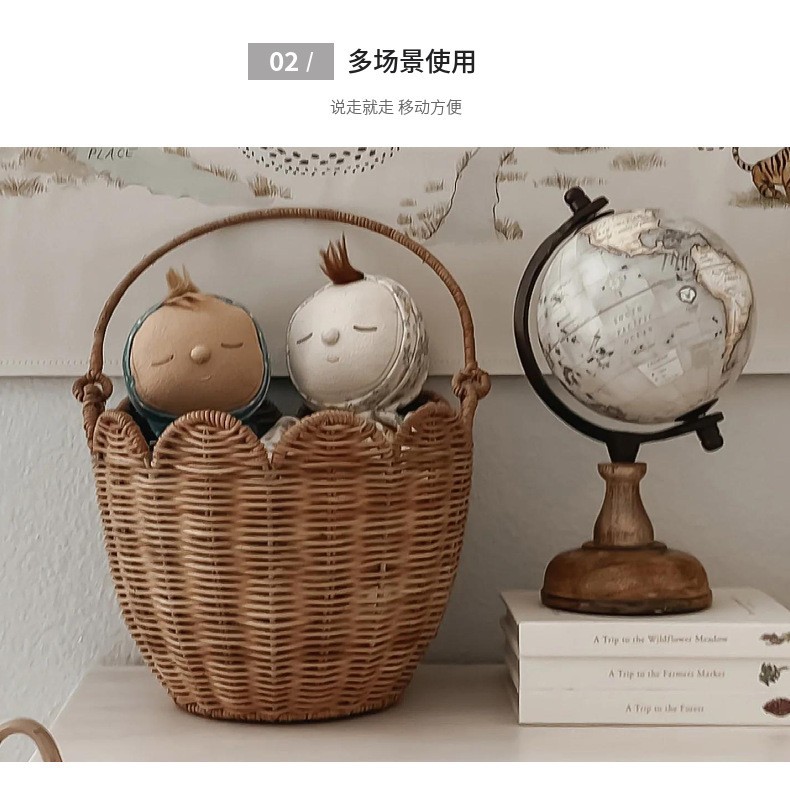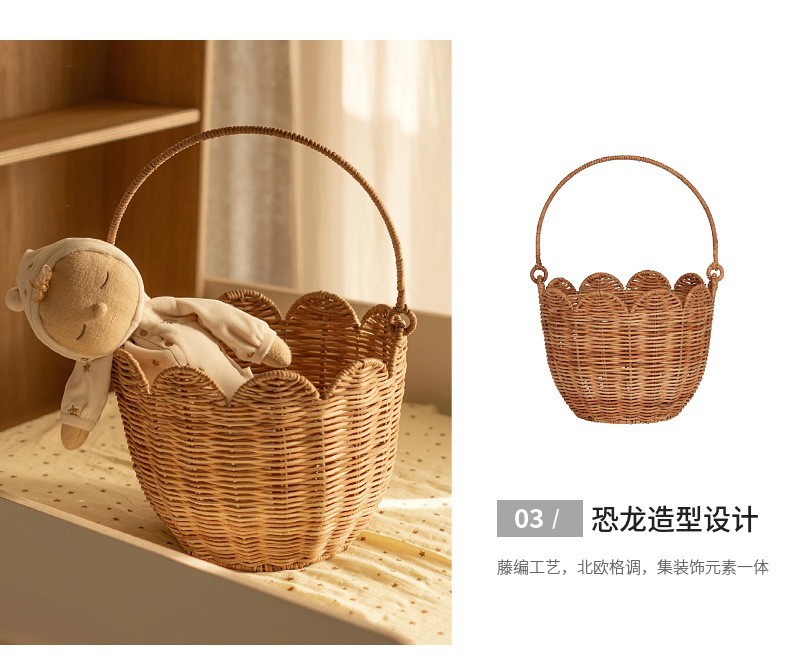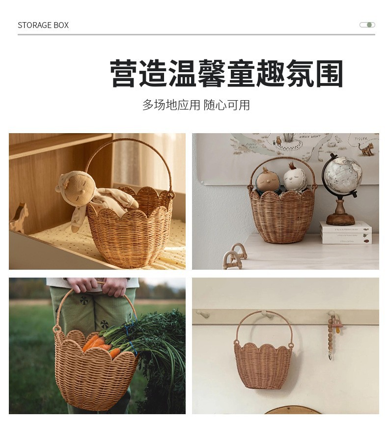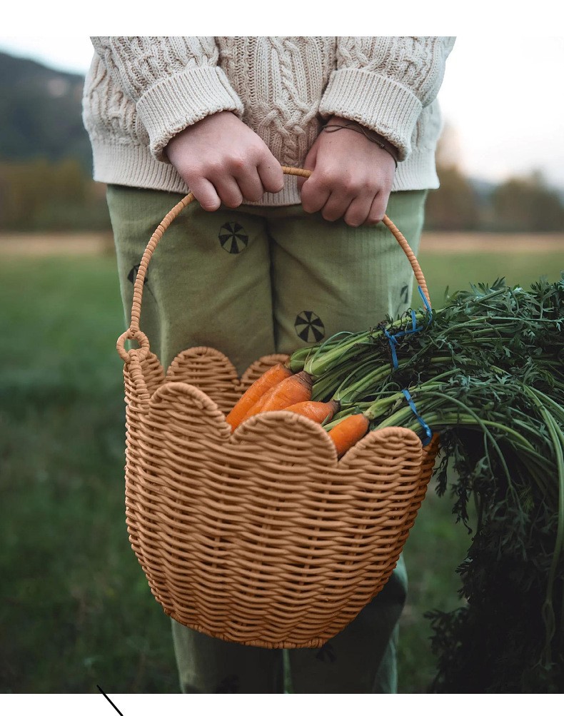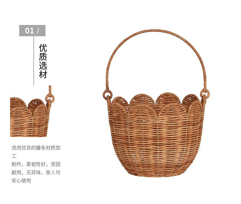 北欧编织篮厨房姜蒜收纳筐复古壁挂篮手提小花篮厨具挂篮天然藤编