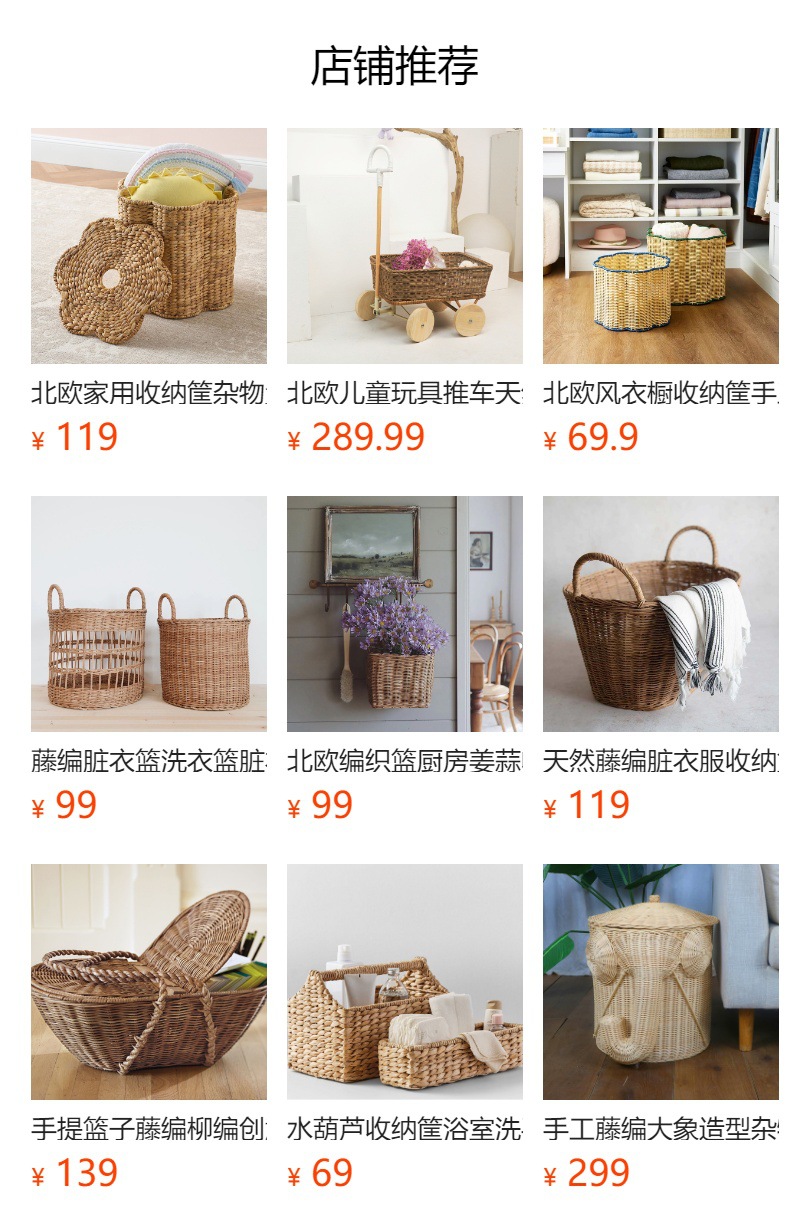 北欧风衣橱收纳筐手工藤编脏衣篮客厅玄关杂物篮家用藤编收纳筐