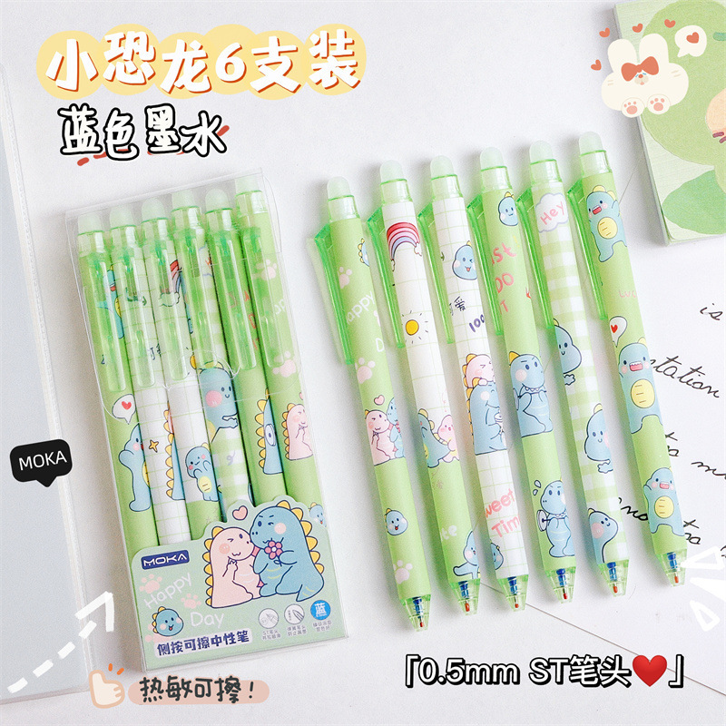 可擦笔6支装- 小恐龙(蓝色)