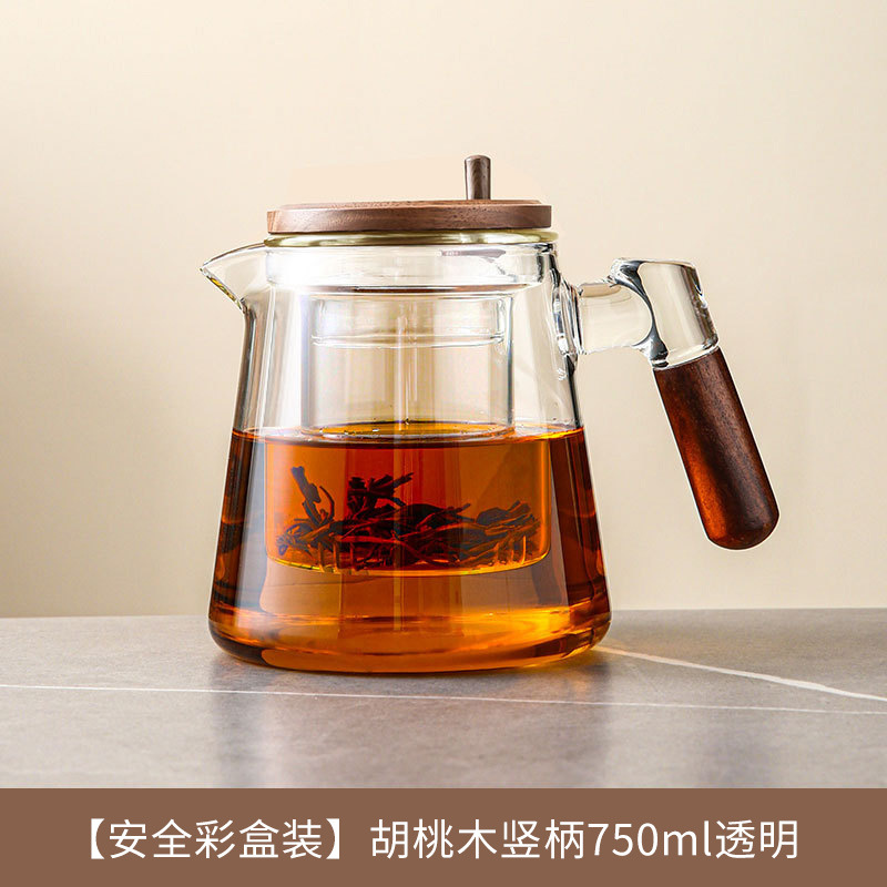 胡桃木飘逸杯家用泡茶分离壶耐热玻璃泡茶壶冲茶器茶水分离壶茶具