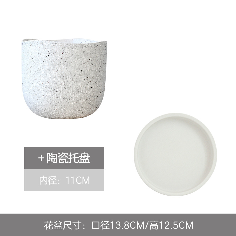 象牙白水滴花盆大号带托盘