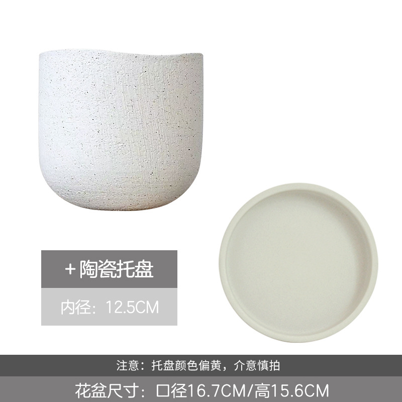 象牙白水滴花盆中号带托盘