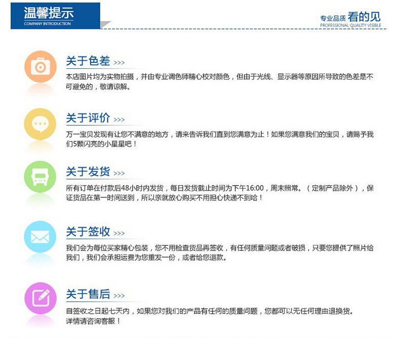 亲爱的顾客,首先感谢您能选购我公司产品,我们会竭诚为你 服务让您满意,本旺铺产品单价均不含运费和税,轻货快递默认汇通快递和韵达,不到发邮政,如需其它快递请与客服协商,重货物流默认德邦物流,城市之星和佳吉,运费到付,需要收据的请备注 哦,需要普票加4%税点,需要开增值税发票加10%,另外请各位亲们 收到货一定记得及时帮我们确认收货,给我们一个真诚的好评价, 相信有您的支持和厚爱我们一定会做得越来越好,期待长期合作!