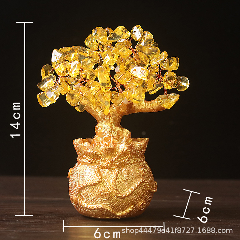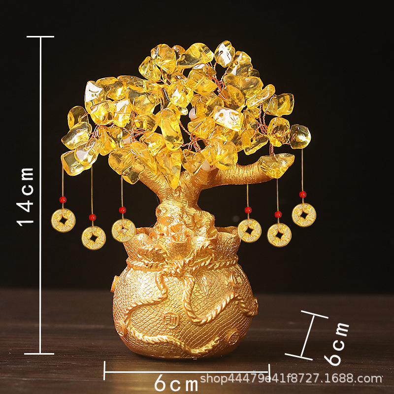厂家直销批发黄水晶招财树钱袋树发财树摇钱树商务工艺礼品摆件