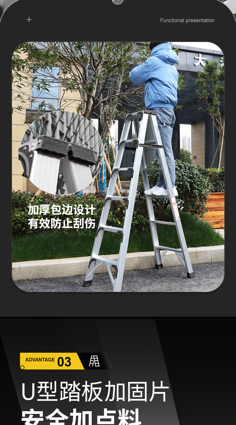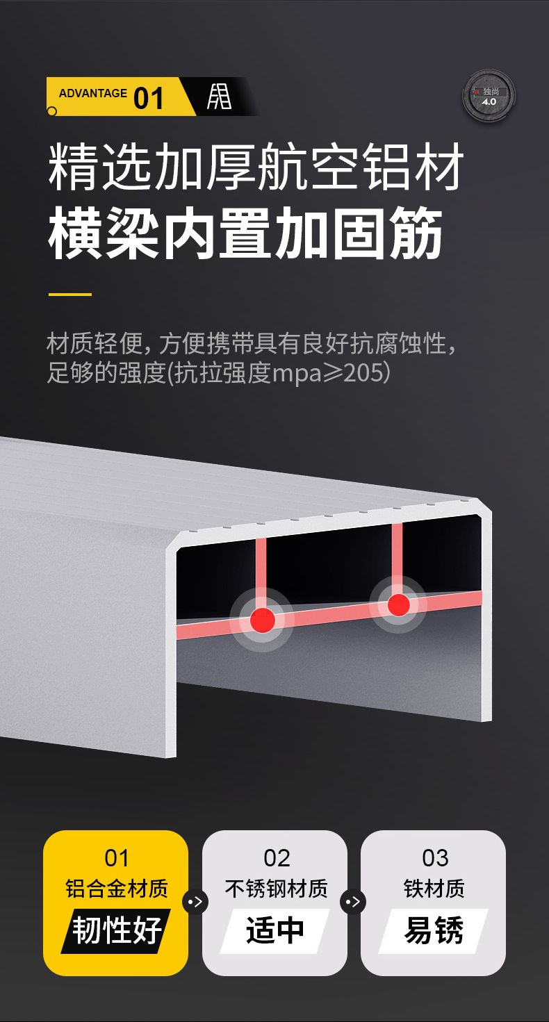 黑【加厚航空铝】加强款双筋4步★腿部加固