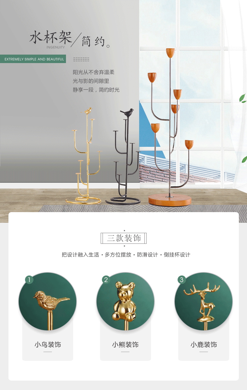 金色仙人掌杯架