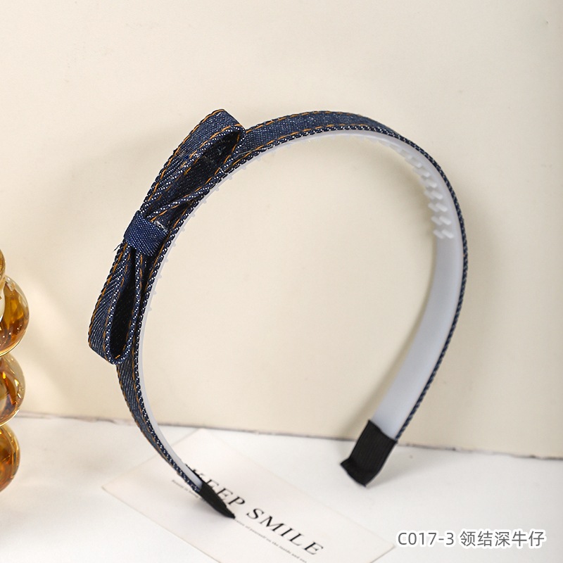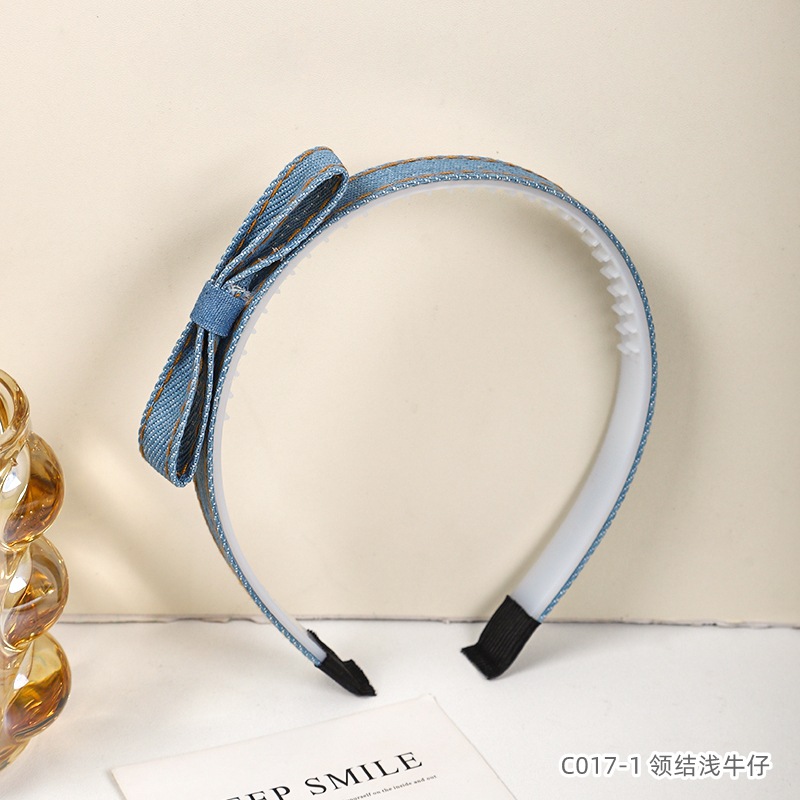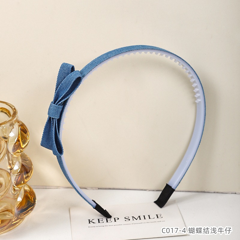 韩版牛仔发饰甜酷风蝴蝶结发箍儿童布艺压发卡带齿防滑少女头箍