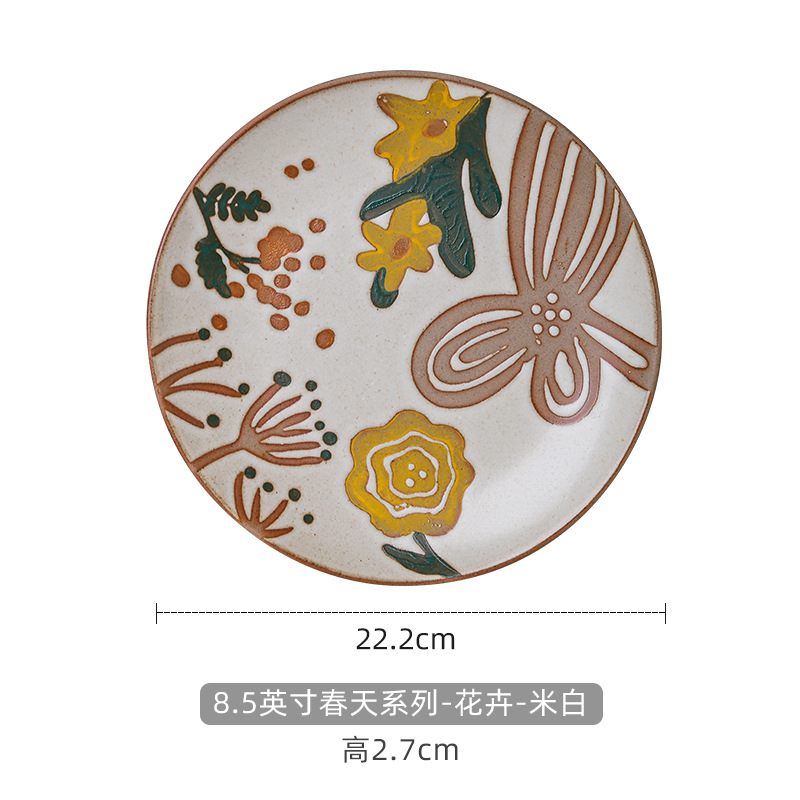春天手绘盘子-芝麻白
